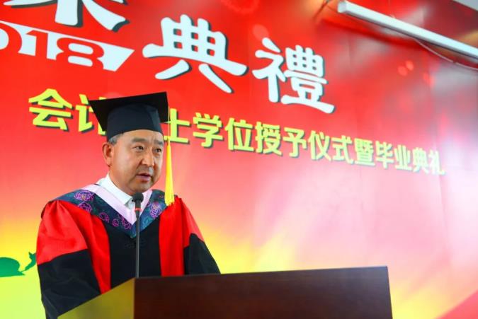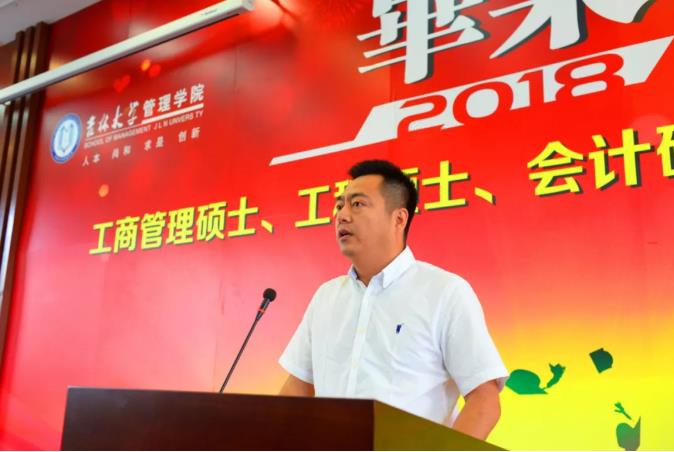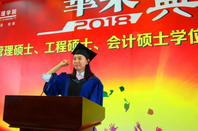 典礼进行第四项:实破生花,放飞理想。追逐美好理想,谨守法律道德底线是管理学院对同学们的嘱咐与期望,承载着这份嘱托,毕业生们跟随领誓人2018届MBA毕业生胡畔一起进行了诚信宣誓。接下来,P站 管理学院MBA联合会代表,2015级MBA班长,中粮集团高级经理刘凯代表历届MBA学长及P站 管理学院MBA联合会致辞。刘凯说,联合会向大家敞开大门,欢迎同学们加入,衷心希望同学们秉承校训精神,成就一番事业,回馈社会,回馈母校的培养,回馈自己百战归来在读书的坚持与梦想。然后,教师代表费宇鹏教授致辞。费老师首先祝贺了即将毕业的同学们,并请大家思考:作为一个生长在伟大时代的管理人应该有哪些作为?费老师生动地讲述了英国的英国制造商和工程师马修·博尔顿投资生产并推广瓦特的蒸汽机的故事,以及美国的汽车工程师与企业家亨利·福特成为世界上第一位使用流水线大批量生产汽车的人的故事。这些卓越的管理人激励着同学们把理论付诸实践,用行动开创伟大时代。最后,管理学院院长赵树宽教授致辞。赵院长向各位来宾表示热烈的欢迎,向即将取得硕士学位的同学们表示热烈的祝贺;他叮嘱同学们不忘师恩,砥砺前行。他向同学们提出几点希望与大家共勉:第一,以创新思维回响时代召唤。保持创新思维,就是要有敢为人先的锐气,以求真务实的态度,结合实际积极探索新方法、新途径。不断学习是建立创新思维的根本,坚持学而信、学而思、学而行是创新行为的体现。第二,以创业精神开拓迟迟行道。创业精神就是保持激情,创业精神也是从容乐观,创业精神更是责任与担当,同学们要以负责的心对待生活和事业,克己恬静、宠辱不惊。第三,以赤子情怀坚守致知初心。要在这个充满诱惑与迷茫的社会中不忘初心,首先就必须具有奉献精神,同时还要常怀感恩之心。赵院长表示管理学院会一直关爱着我们的校友,也希望你们能够关心母校的建设与发展。最后,祝愿大家珍惜今天,放眼未来,律己隆法,修身明德,不辱使命,不负重托,前程锦绣,人生幸福!