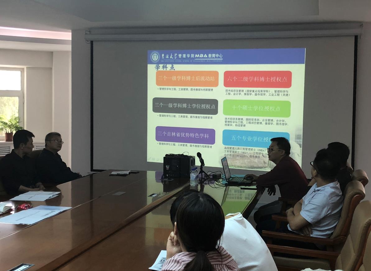 2018年9月4日P站 管理学院张公一副院长、MBA教育中心房伟主任、李天贺老师等一行来到长春百克生物科技有限公司招生宣讲现场。长春百克常务副总陈晓辉、人事副总冯大强以及人事部、法规体系部、销售部等各个部门经理近30人参加本次招生政策说明会暨备考经验交流会。