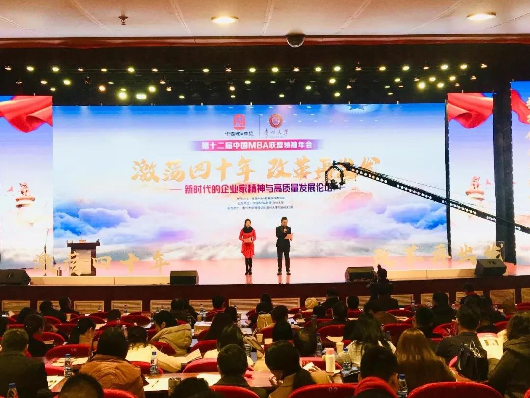 2018年12月15日,第十二届中国MBA联盟领袖年会在贵阳会议中心隆重开幕。本届年会由全国MBA教育指导委员会指导,中国MBA联盟、贵州大学主办,贵州大学管理学院、贵州大学MBA联合会共同承办。会议以“激荡四十年 改革再出发——新时代的企业家精神与高质量发展”为主题,来自全国百余所高校的院长、教师、顾委会成员、区域联盟主席、优秀MBA/EMBA学员代表共近千人参加了此次会议。