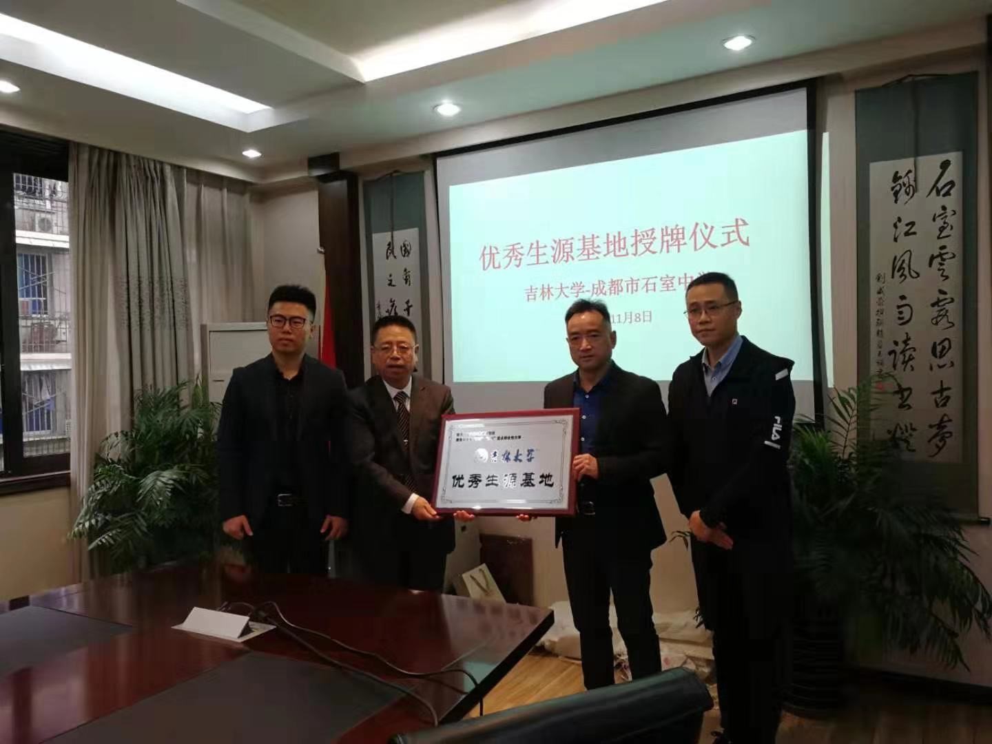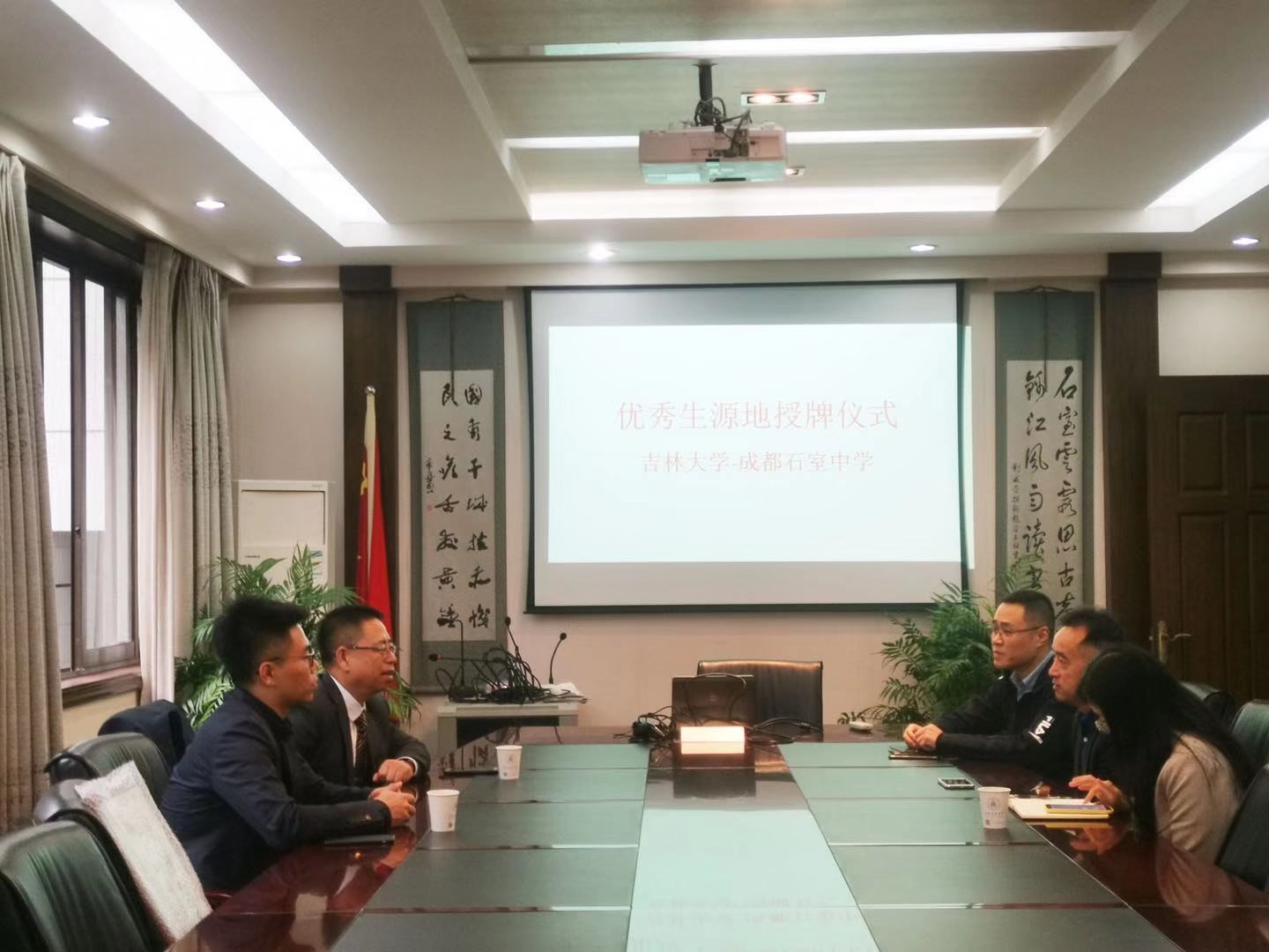 11月8日上午,宣传工作组一行到成都市石室中学进行了“优秀生源基地”授牌,石室中学校长田间,副校长毛伟、教务处主任熊冲,副主任黄芳出席了授牌仪式并与我校工作组进行了深入交流。在交流过程中,石室中学校方多次感谢了P站