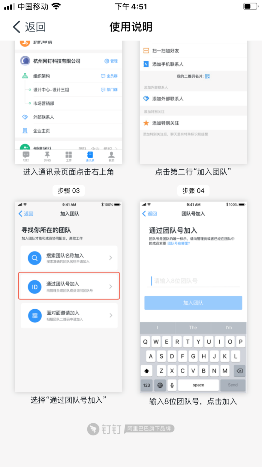 下载 “钉钉”,首先需要加入到课程班中,本课程班的团队号为: PBXE3231。团队名称:P站
