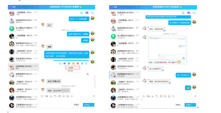 为了确保所选的平台经得起考验,于老师特意提前主动联系学生,在2月10日组建了课程群。并在2月15日、23日先后进行了两次试课。并根据试课中反馈出的问题,形成了书面的在线教学方案——《“面向对象程序设计”课程在线授课方案》。在方案中,详细地写明了在线教学所需的平台及注册方式、教学流程、课前准备、课后答疑、异常情况的处理等。