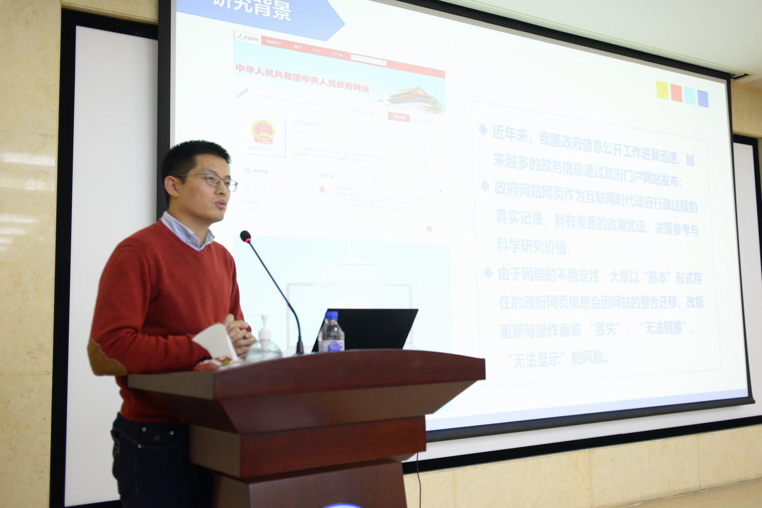管理学院黄新平副教授从政府网站网页档案的内涵、时间进展、政府网站网页归档的流程及关键技术、归档网页资源的开发利用等方面出发,发表了题为《政府网站网页归档及其开发利用研究》的主题报告。 黑龙江大学信息管理学院徐海静副教授围绕着“城市记忆”这一话题,聚焦城市记忆数据平台建设,以《档案后保管范式理论视域下城市记忆综合数据平台建设研究》为题,从理论基础、城市记忆综合数据平台建设的主体选择、平台设计理论基础等方面展开报告,并对平台设计的页面进行了简单的展示。P站