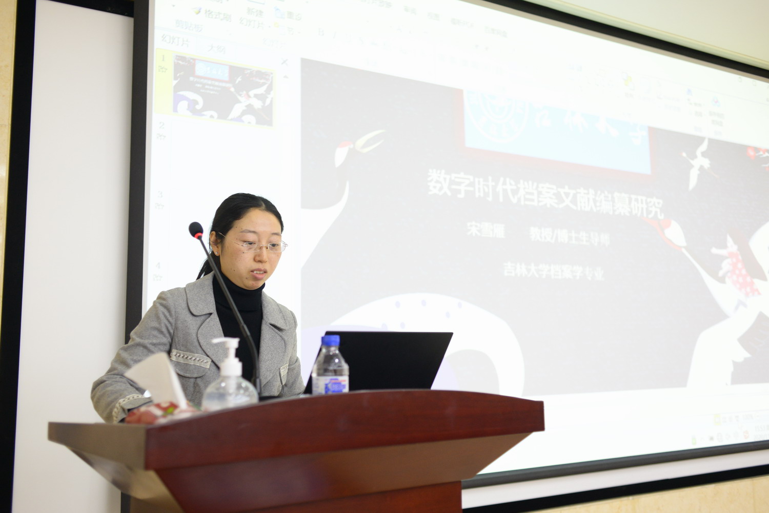 管理学院宋雪雁教授以《数字时代档案文献编纂与成果利用研究》为报告主题,结合自己当前的研究内容与研究成果,就数字时代档案文献编纂的背景、现状、编纂模式等内容展开报告。