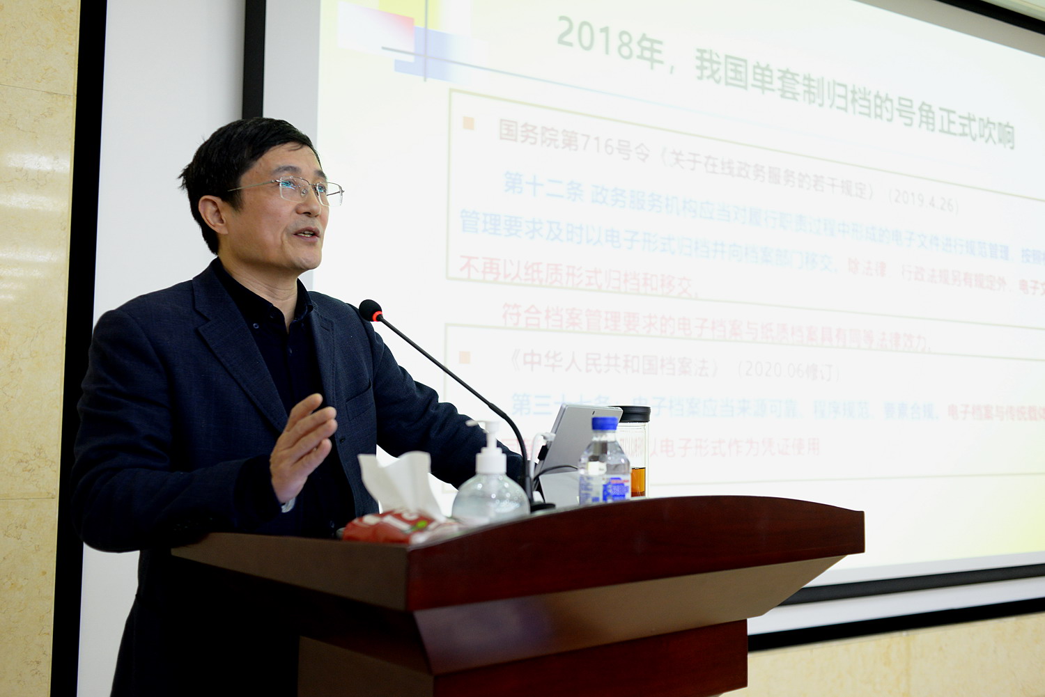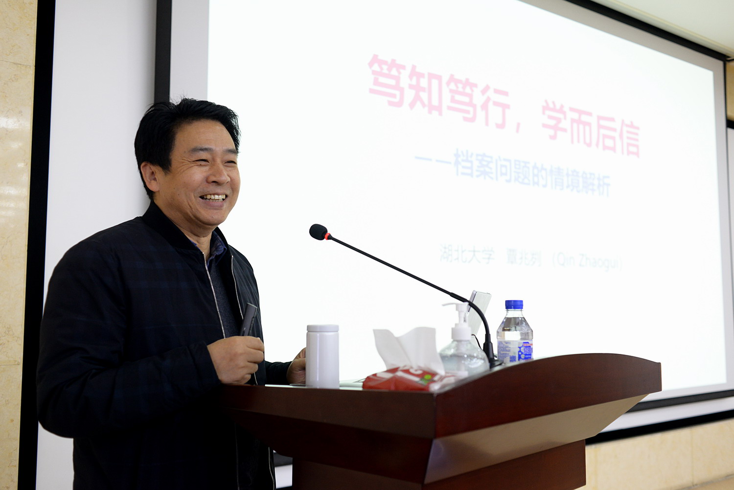 开幕式结束,第二届东北地区档案学术研讨会正式开始。上午邀请到四名档案学界专家进行学术报告。湖北大学历史文化学院覃兆刿教授以《笃志笃行,学而后新——档案问题的情境解析》为题,从情境认知理论出发,认为档案学的研究要向实践去学,尤其需要走近实践,做到学以致用。档案的学科价值、学术研究的思考需要从实践中来,复又到实践中去。 苏州大学社会学院、档案数据保全研究所张照余所长以《电子文件单套制归档面临的问题及其保全策略》为主题,深入探讨了单套制归档需要解决的问题、电子档案存在的安全风险及电子档案的安全保管策略等。辽宁大学历史学院赵彦昌教授结合自身的研究,为在座师生带来了《数字时代清代档案整理与研究的几点思考》报告,阐明了清代档案整理的传统与变革,并展望十四五期间清代档案整理研究的发展方向。黑龙江大学信息管理学院任越教授以《数据时代我国档案文献编纂工作的样态》为主题,从《阿波罗11号》的纪录片及新修订的《档案法》出发洞察档案领域的发展方向。