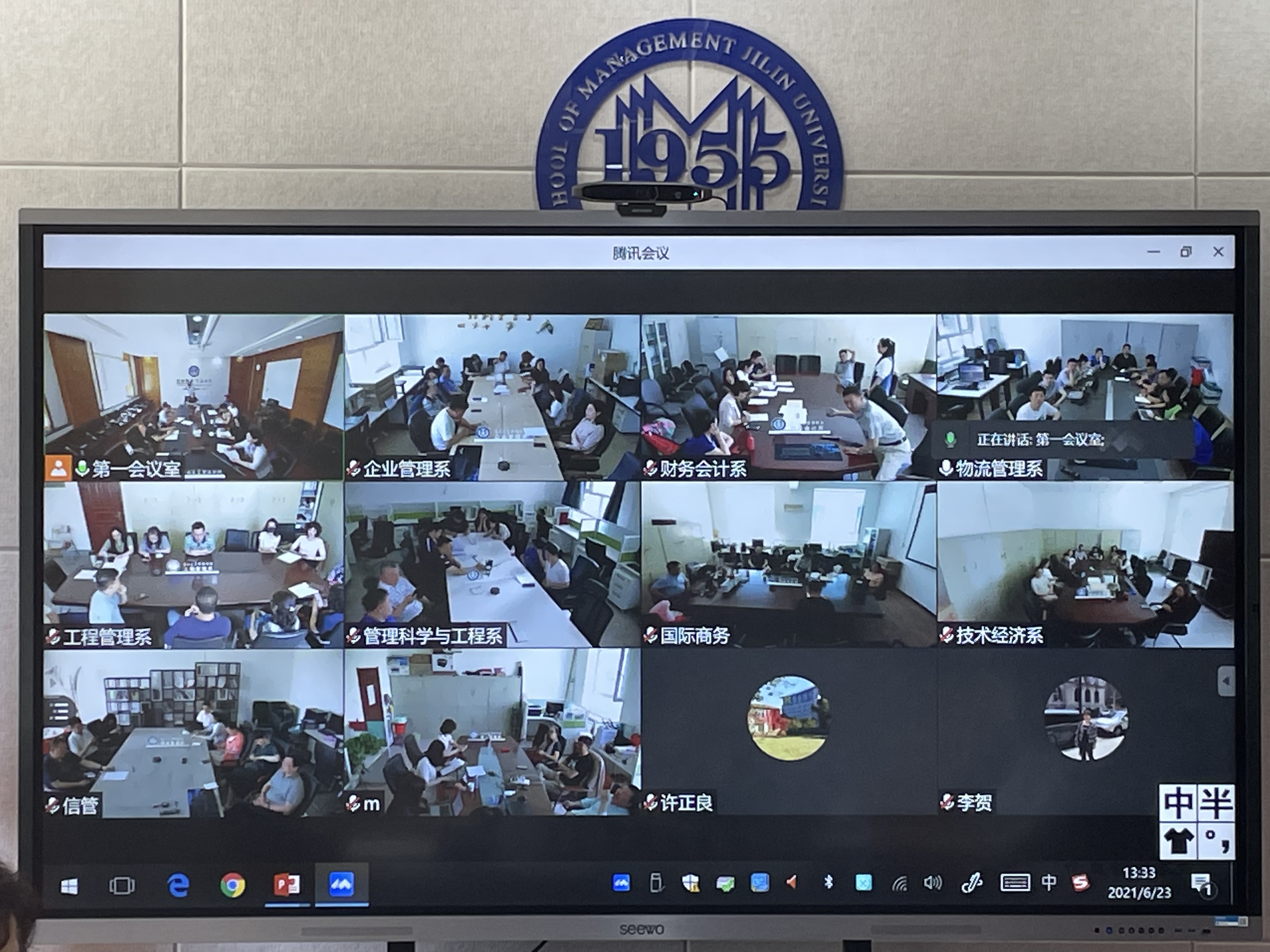 管理学院在党史学习教育中聚焦“办师生实事”,针对学院老师们开展学术研讨、课程教研、线上会议等的相关需求,为提升智能化水平,学院为全院9个系统一配置了LED一体机、无线全向麦、全向摄像头等设备。6月23日下午,学院领导班子在第一会议室、全院教师在各自所在系,运用新配置的视频会议设备,召开了一次别开生面的“全院教师工作例会”,会议由学院党委书记赵军主持。