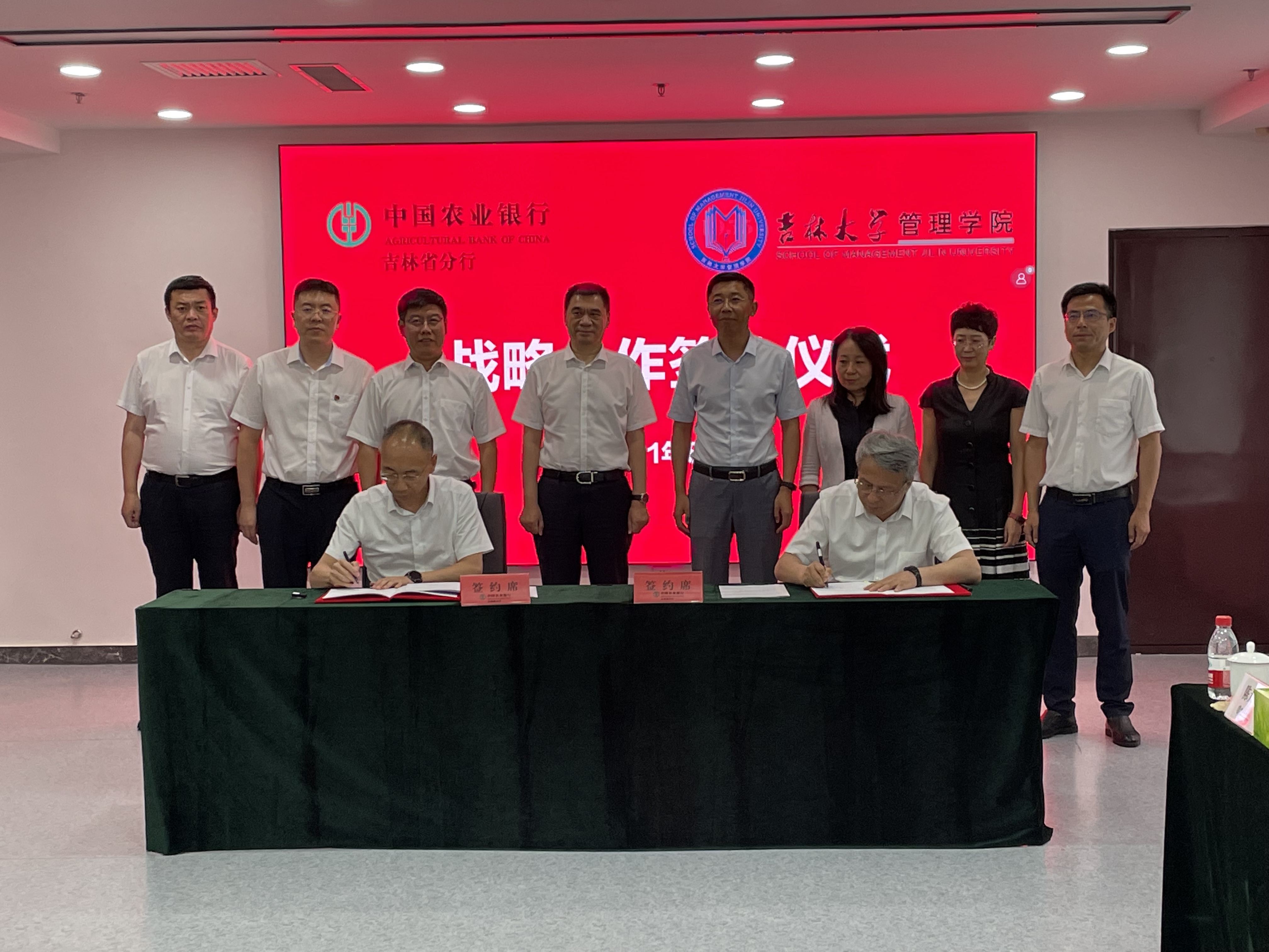 管理学院院长李北伟、中国农业银行吉林省分行副行长孙春国代表双方现场签订了战略合作协议。