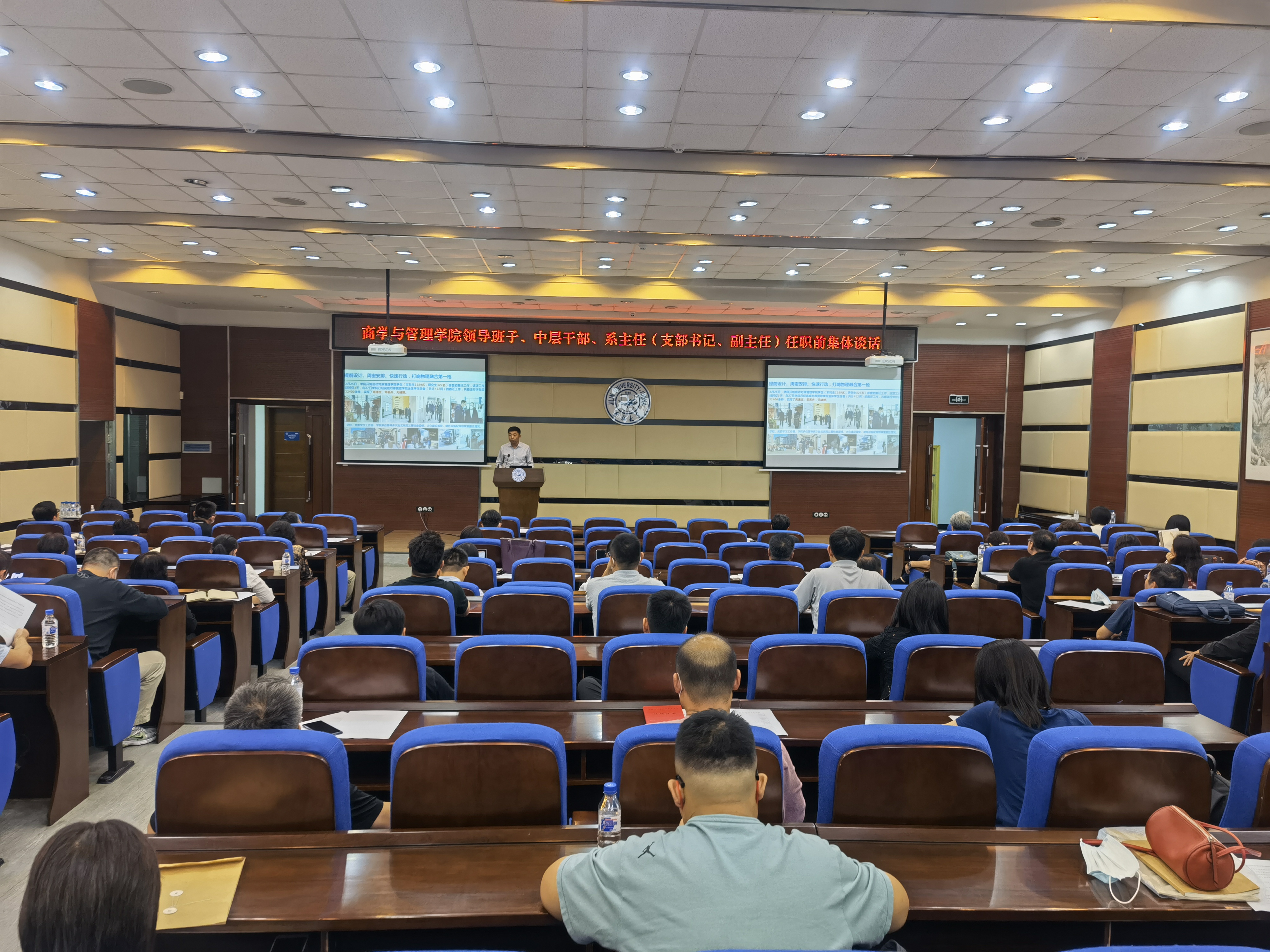 在东荣大厦易新报告厅召开了学院新任领导班子、中层干部、系主任(支部书记、副主任)任职前集体谈话。学院领导班子、中层干部、系主任(支部书记、副主任)全体成员参会。会议由学院党委书记赵军主持。