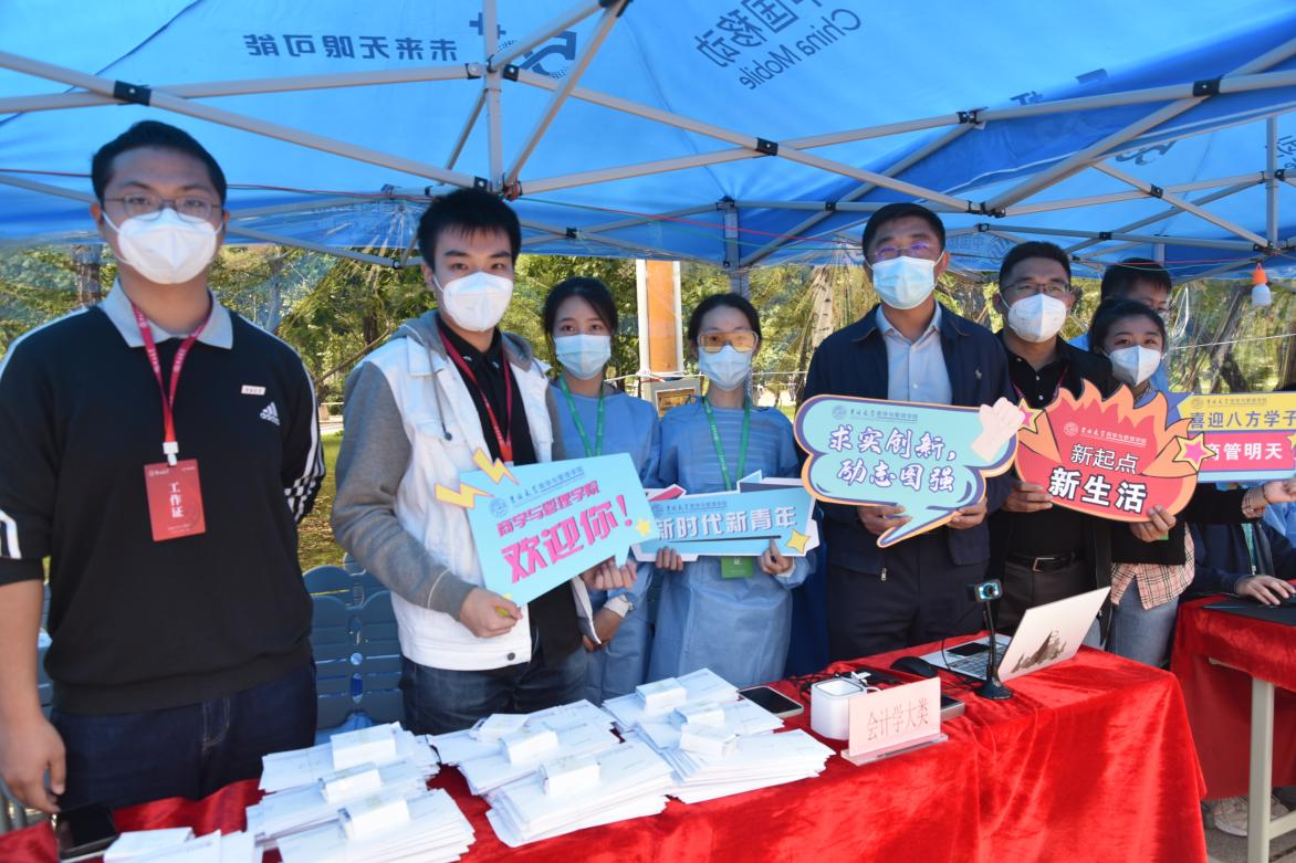 党委副书记兼副院长李帅、新生辅导员李毓、贾奇达,学生工作办公室丁越、刘天目、陈卓、刘翔宇与迎新志愿者们已经早早地来到迎新现场,将一箱箱迎新物资搬到迎新帐篷并且摆放整齐,以文明、饱满的精神面貌准备迎接来自祖国各地的新同学。
