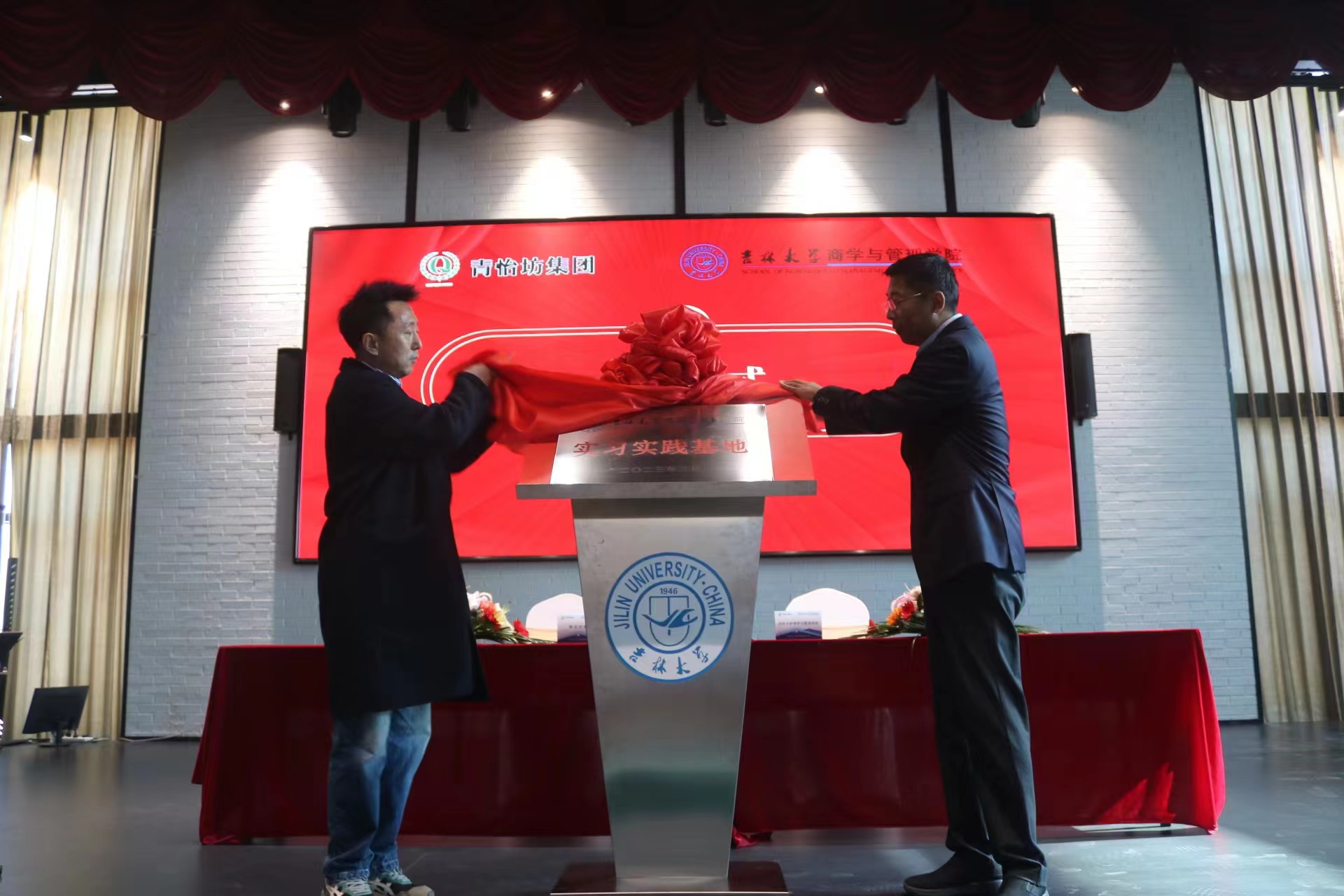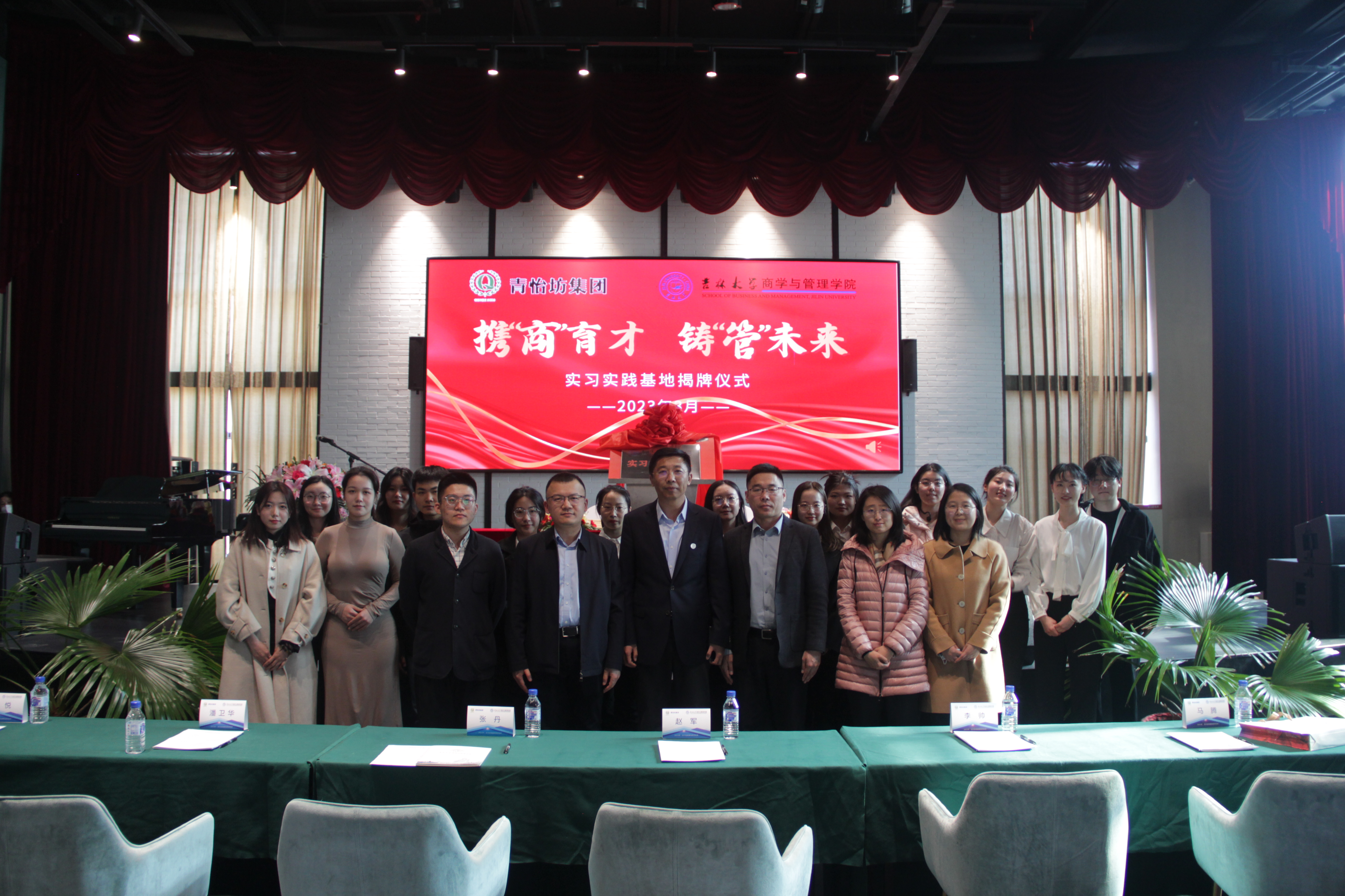 党委书记赵军、党委副书记兼副院长李帅、党委副书记马腾、青怡坊集团商业地产总经理李悦、商业公司总裁潘卫华以及辅导员和部分学生代表出席了本次揭牌仪式。