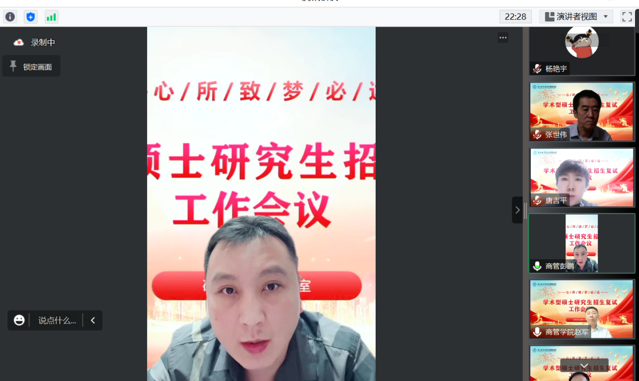 会上,隋建利副院长对本次硕士研究生复试工作进行了全面介绍,从复试的原则、管理、方式、内容、流程和要求几方面进行了详细的解读。明确突发事件应急措施,以确保复试的顺利完成等。