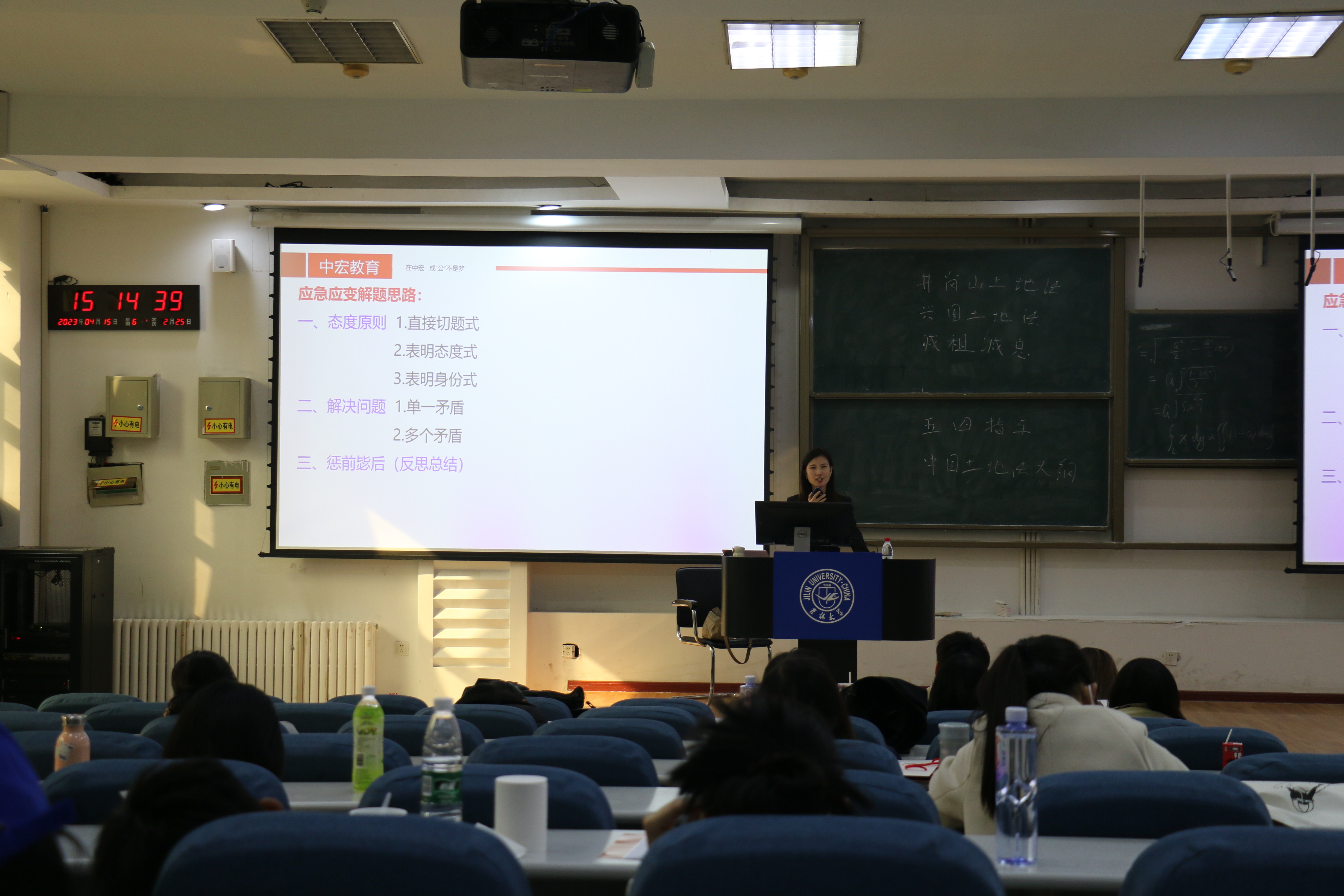 于敬信楼F2阶梯教室开展“职院启航”就业指导系列公益培训活动。讲座由就业创业指导与服务中心邀请到具有九年公考培训经验的讲师张鹏志主讲,P站