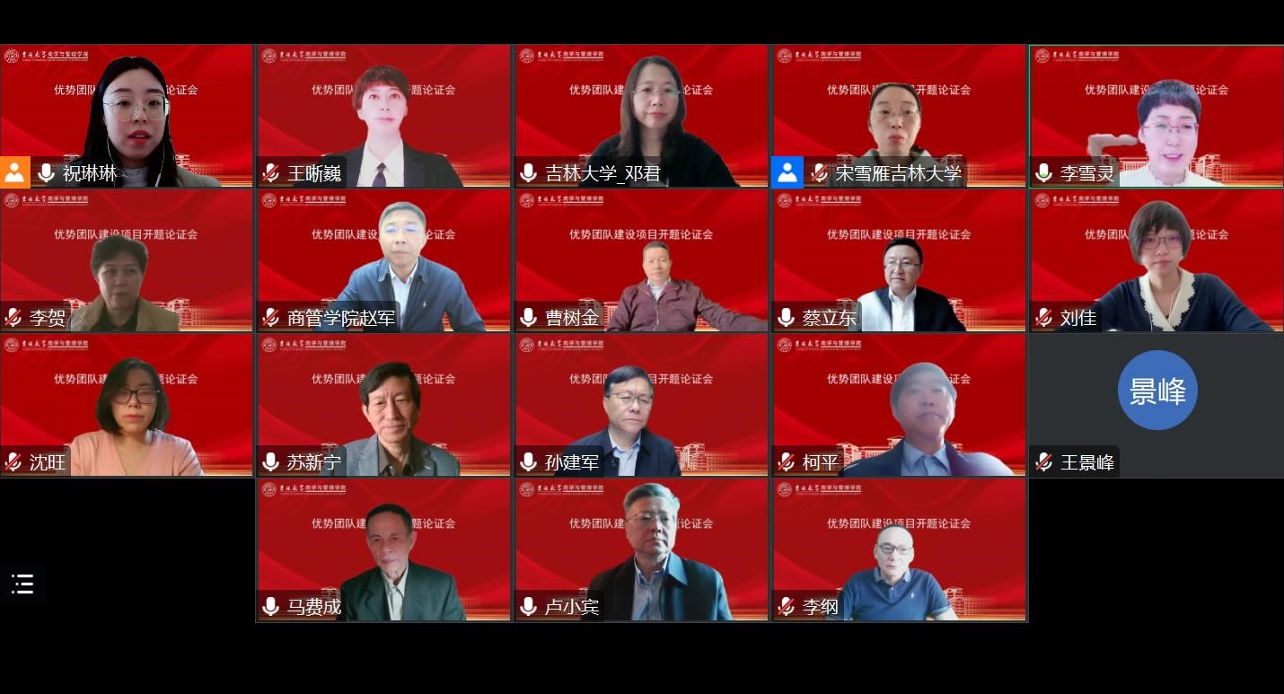 优势团队建设计划项目团队“数智驱动的信息资源服务体系重构及知识体系建构研究”开题论证会以线上会议方式召开。来自武汉大学、南京大学、南开大学、中国人民大学、中山大学、P站