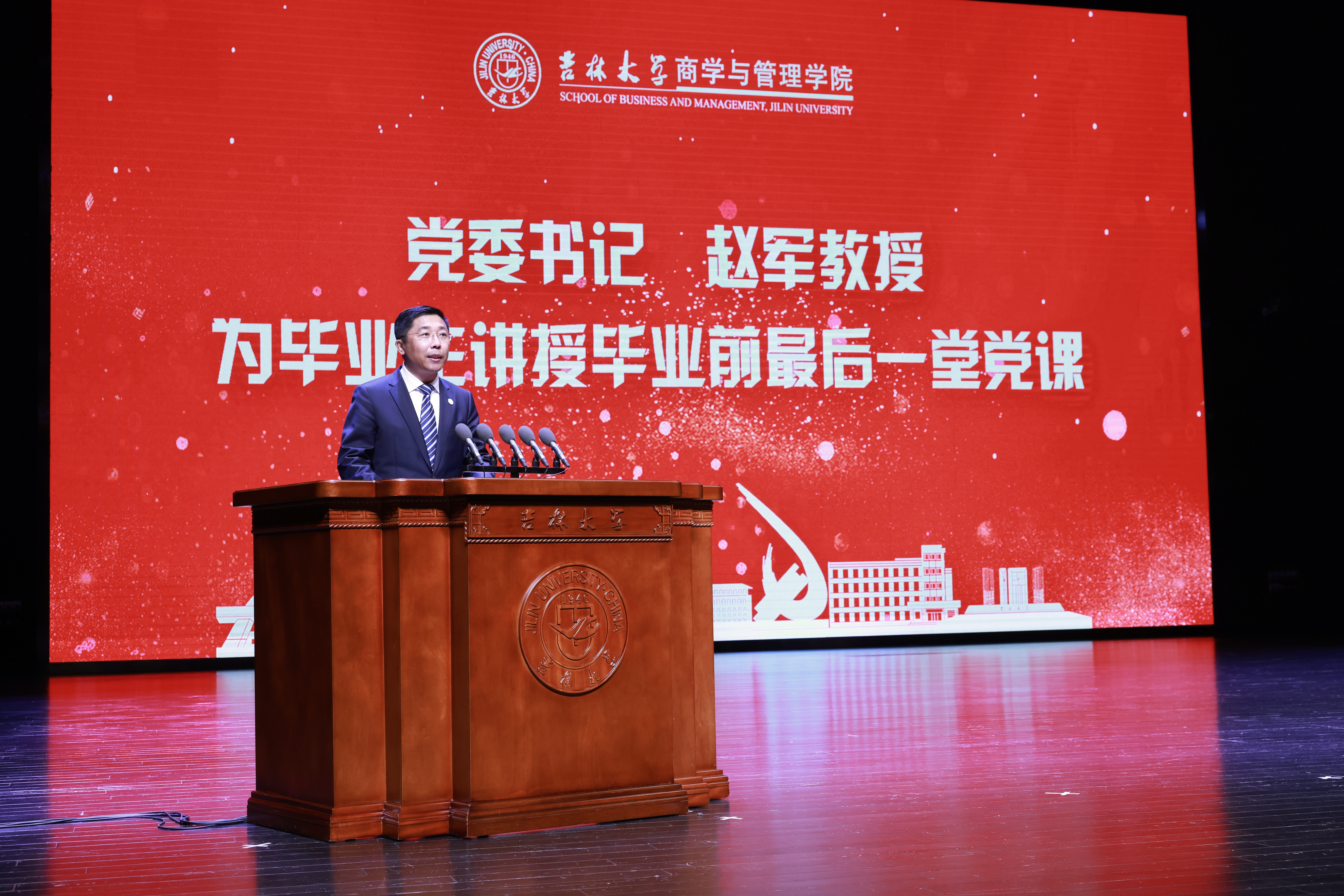 党委书记赵军教授为全体毕业生讲授了毕业前最后一堂党课。他提出要以红色基因永续青春年华,未来之日少年必有可为。他强调要用实际行动践行“请党放心、强国有我”的青春誓言,坚定不移听党话、跟党走。