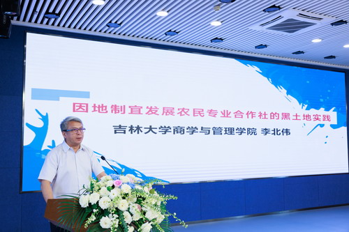 李北伟教授,农行吉林省分行党委委员、副行长秦翰 ,中科院东北地理与农业生态研究所研究员李禄军,中国农业机械化科学研究院集团有限公司副总经理赵庆亮,榆树市委常委、副市长闫伟、中国农业大学吉林梨树实验站、梨树县农业技术推广总站站长王贵满 ,吉林省农业综合信息服务股份有限公司董事长赵明等分别进行了主旨演讲,分享了黑土地保护与利用的实践经验。