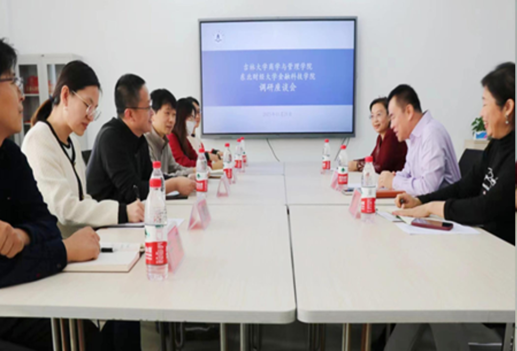 第一调研组由应用金融系丁志国教授、董竹教授、孙秋枫副教授三人组成,于2023年11月20日赴东北财经大学进行学科调研,与东北财经大学金融科技学院副院长李凤羽教授、副院长王谨乐副教授及教师代表进行了座谈。李凤羽副院长介绍了东北财经大学金融科技学院创建的历史、师资情况、人才培养、招生以及毕业生就业等情况。丁志国教授说明了此次调研的目的和希望交流的多方面问题。董竹教授介绍了P站