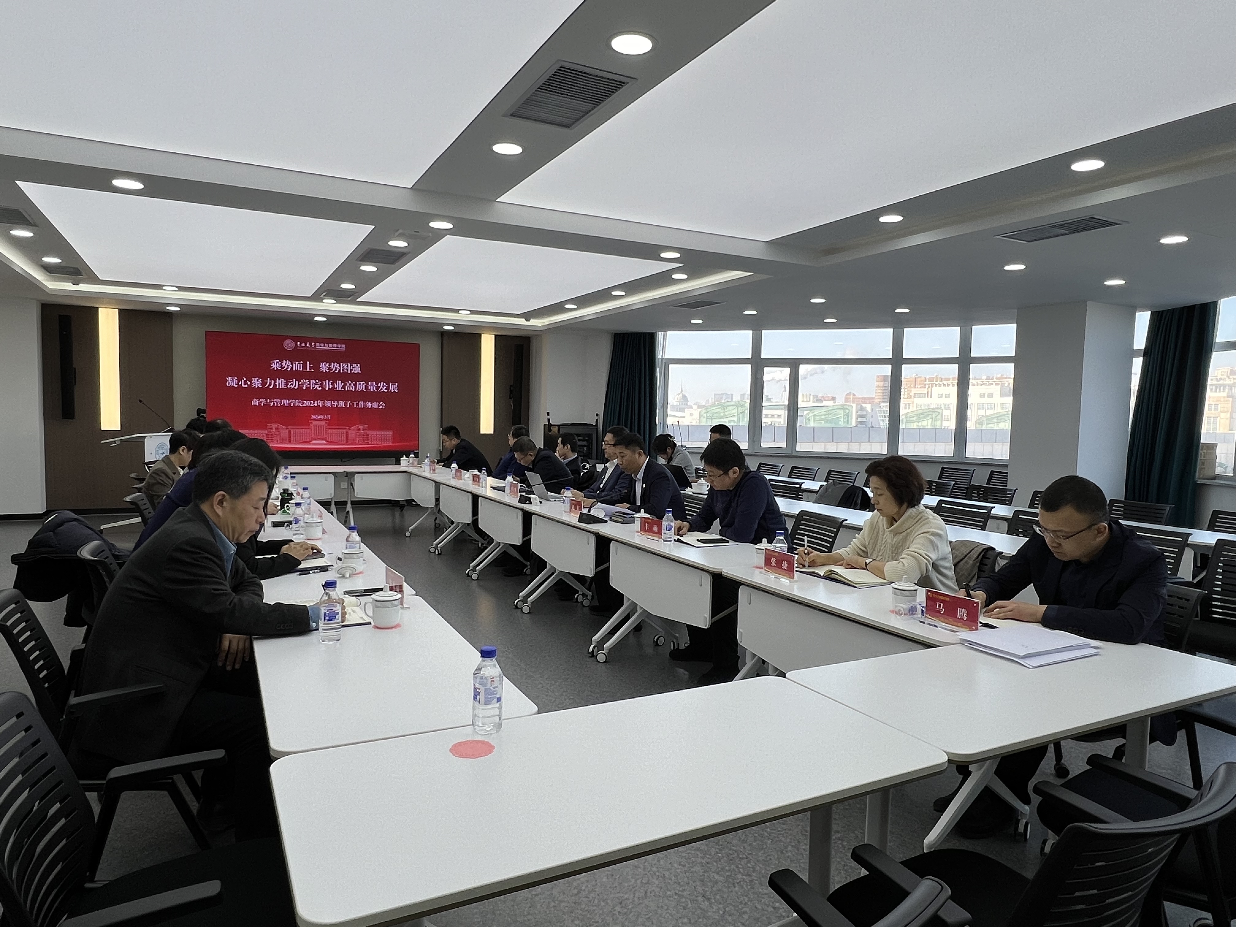 2024年领导班子工作务虚会在东荣大厦506会议室召开。学院领导班子全体成员、学术组织和内设机构负责人代表参加了本次会议。会议由学院党委书记赵军同志主持,学校党建工作联络员卢广林同志到会指导。