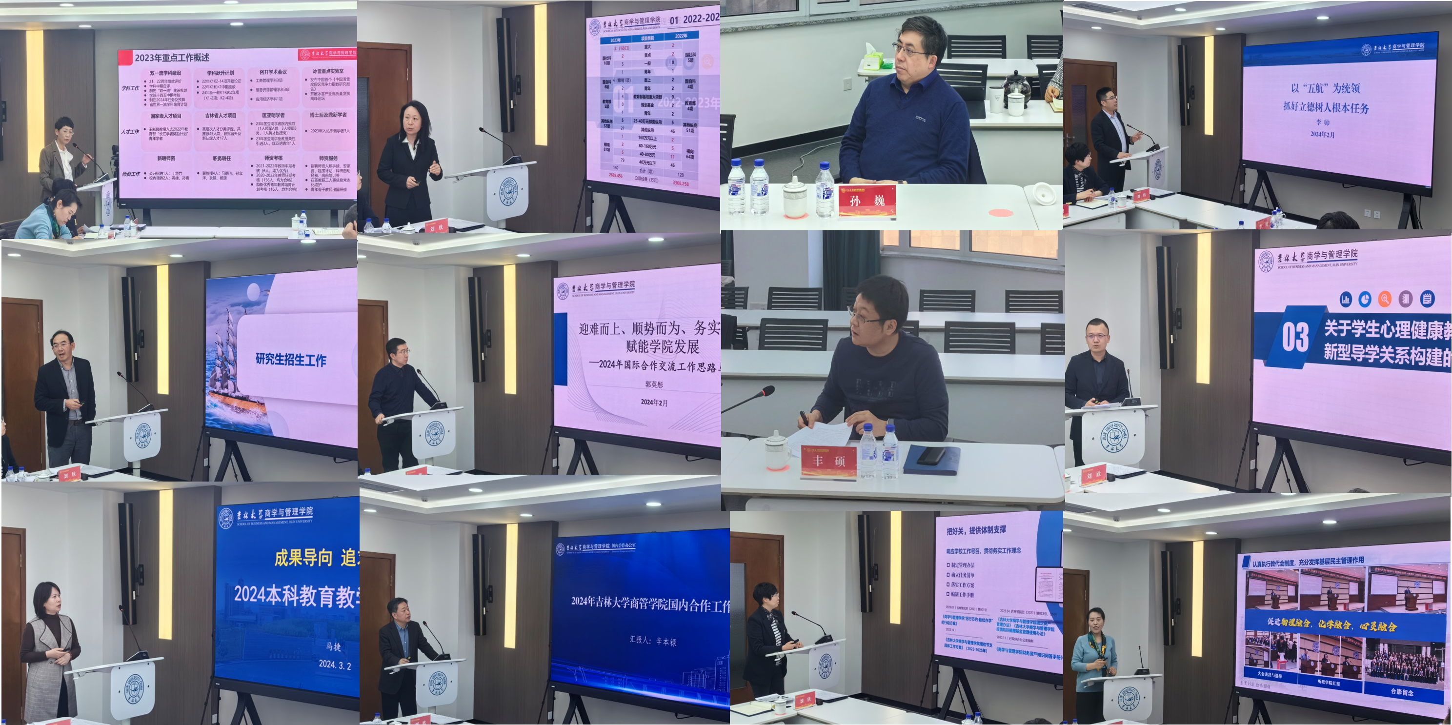 会议围绕“乘势而上,聚势图强,凝心聚力推动学院事业高质量发展”这一主题,结合学院组建两年来的工作情况,聚焦各项工作的高效推进,紧密结合深入学习贯彻习近平新时代中国特色社会主义思想,全面贯彻落实党的二十大精神,巩固拓展主题教育成果成效,全面贯彻学校第十五次党代会精神,全面落实“十四五”规划,紧紧围绕深化“三大工程”建设,全力推进“文科振兴计划”,全面推进“一流学科培优行动”,加快推进有组织的科研,扎实推进“增收节支”工作等学校党委重大部署、重点任务和重要工作,立足物理融合、化学融合、心灵融合三个阶段任务,坚持党建工作与中心工作深度融合,确立靶向,领受任务,开展调研,集中研讨,充分发挥学院党委的政治优势、组织优势以及党政领导班子集体力量,切实为2024年度学院各项工作高点谋划、高位推动、高效落实打牢思想基础、集中智慧力量、激发创新活力,推动学院高质量发展迈出新步伐、打开新局面、取得新成效。