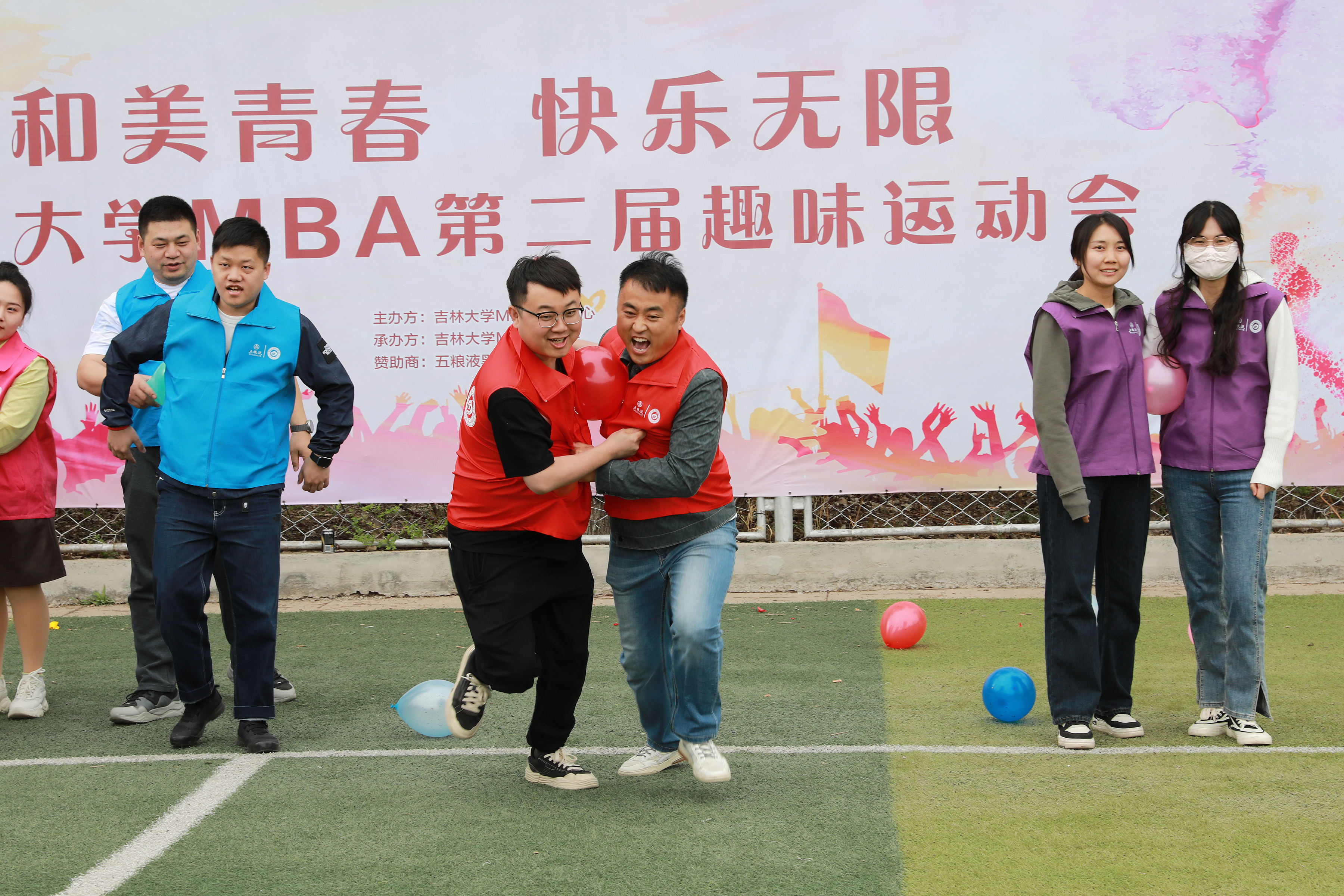 MBA教育中心学生事务工作办公室与MBA联合会联合举办的第二届MBA趣味运动会于2024年4月27日下午在南区足球场上激情上演。此次运动会以“和美青春·快乐无限”为主题,共计有来自2023级MBA的8个班级、2024级MBA的新生代表等共计10个队伍三百余人参加,开启了一系列趣味盎然的比赛项目。