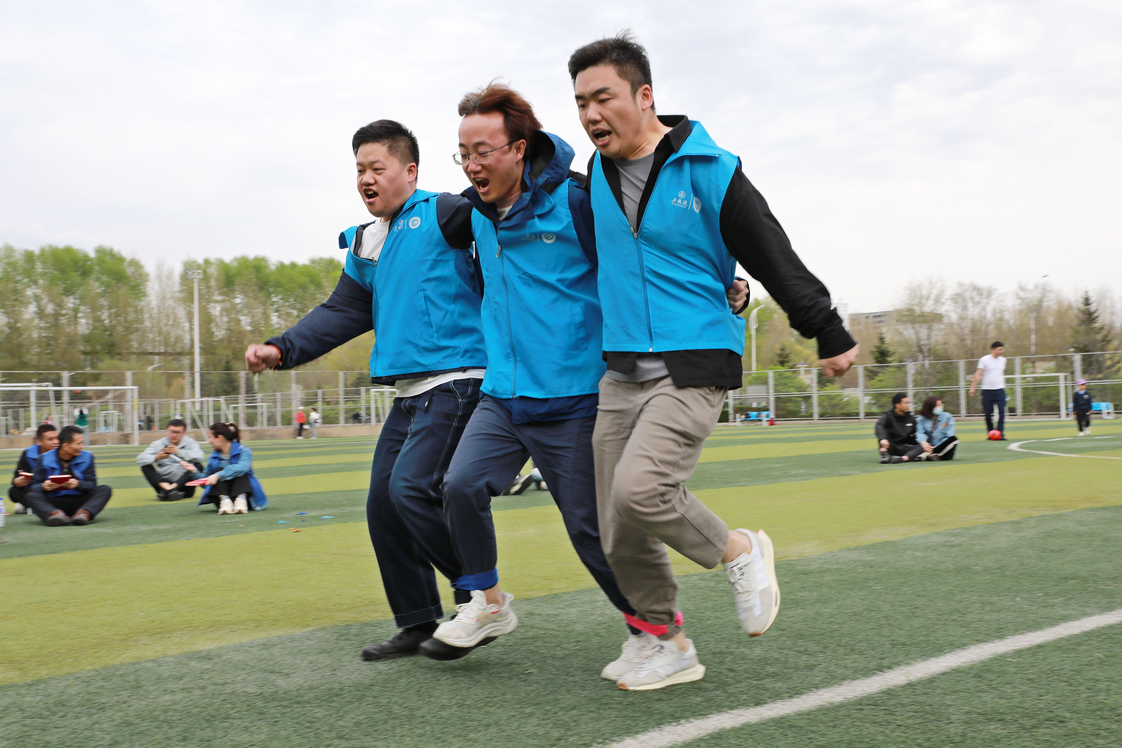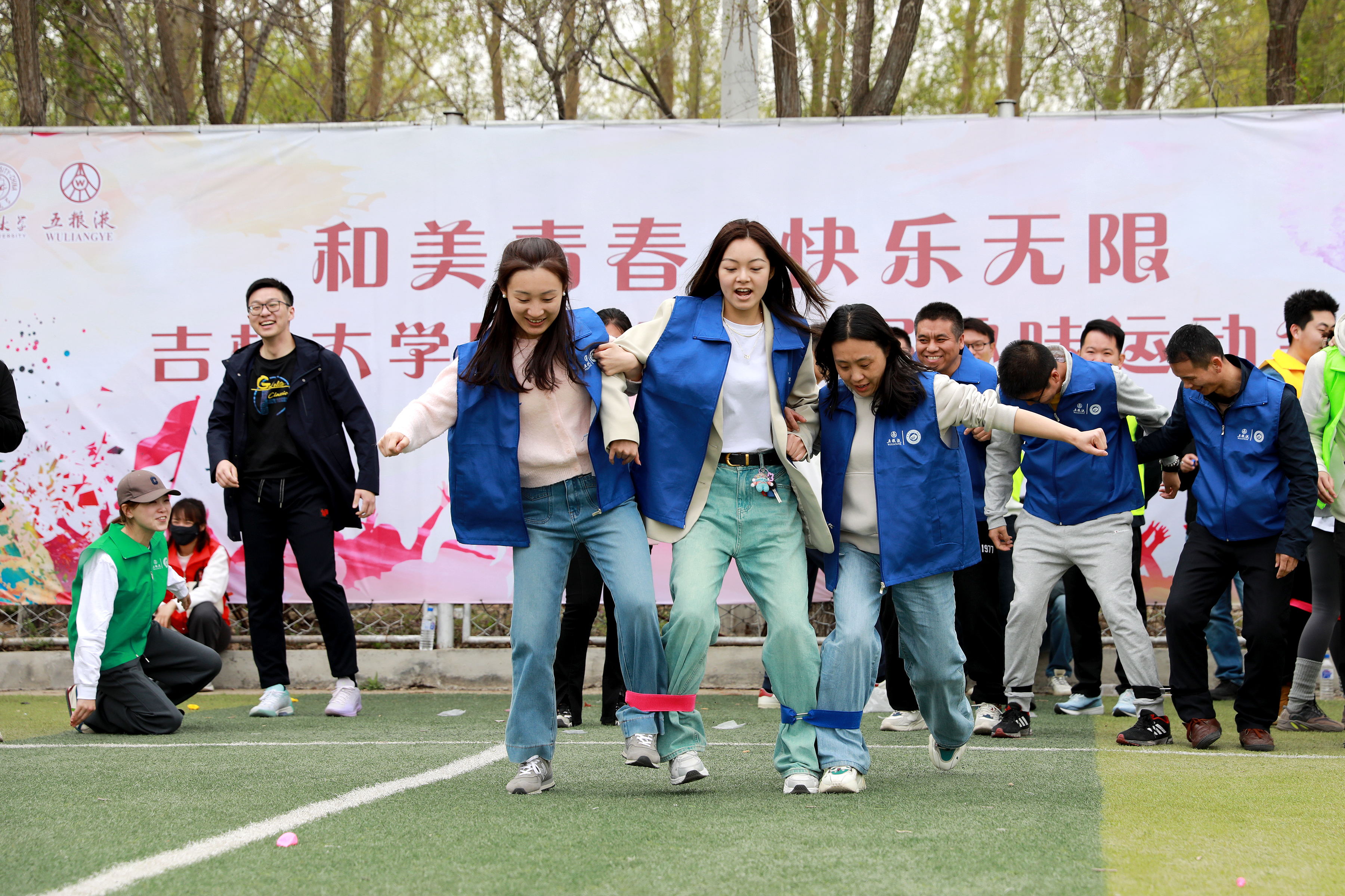 随后进行的“三人四足”比赛更是将现场气氛推向了高潮。参赛选手们手挽手、肩并肩,共同迈向胜利的终点。他们步调一致、配合默契,如同一条巨龙在赛场上腾飞。观众们被他们的团结精神所感染,纷纷起立鼓掌,为他们加油助威。