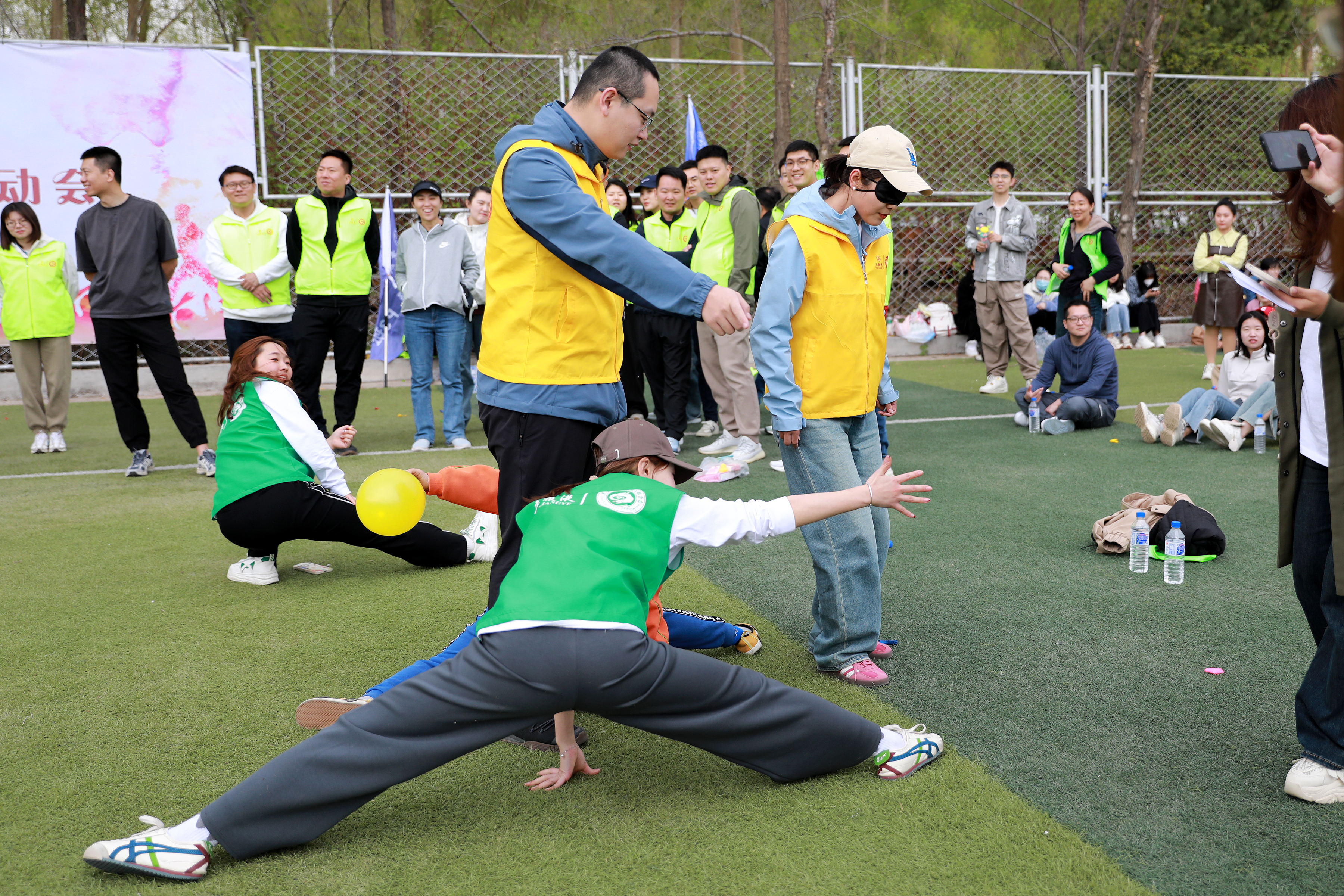 随着裁判的一哨响,第一项比赛“快乐抱抱爆”正式拉开帷幕。各班级参赛选手两两结对,背靠背夹住气球,犹如并蒂莲般紧紧相依,奋力向终点线冲刺。气球在空中划过一道道优美的弧线,伴随着观众的喝彩声,最终在终点线前绽放出绚烂的色彩。选手们的默契配合和坚韧不拔的精神,赢得了在场师生的阵阵掌声。