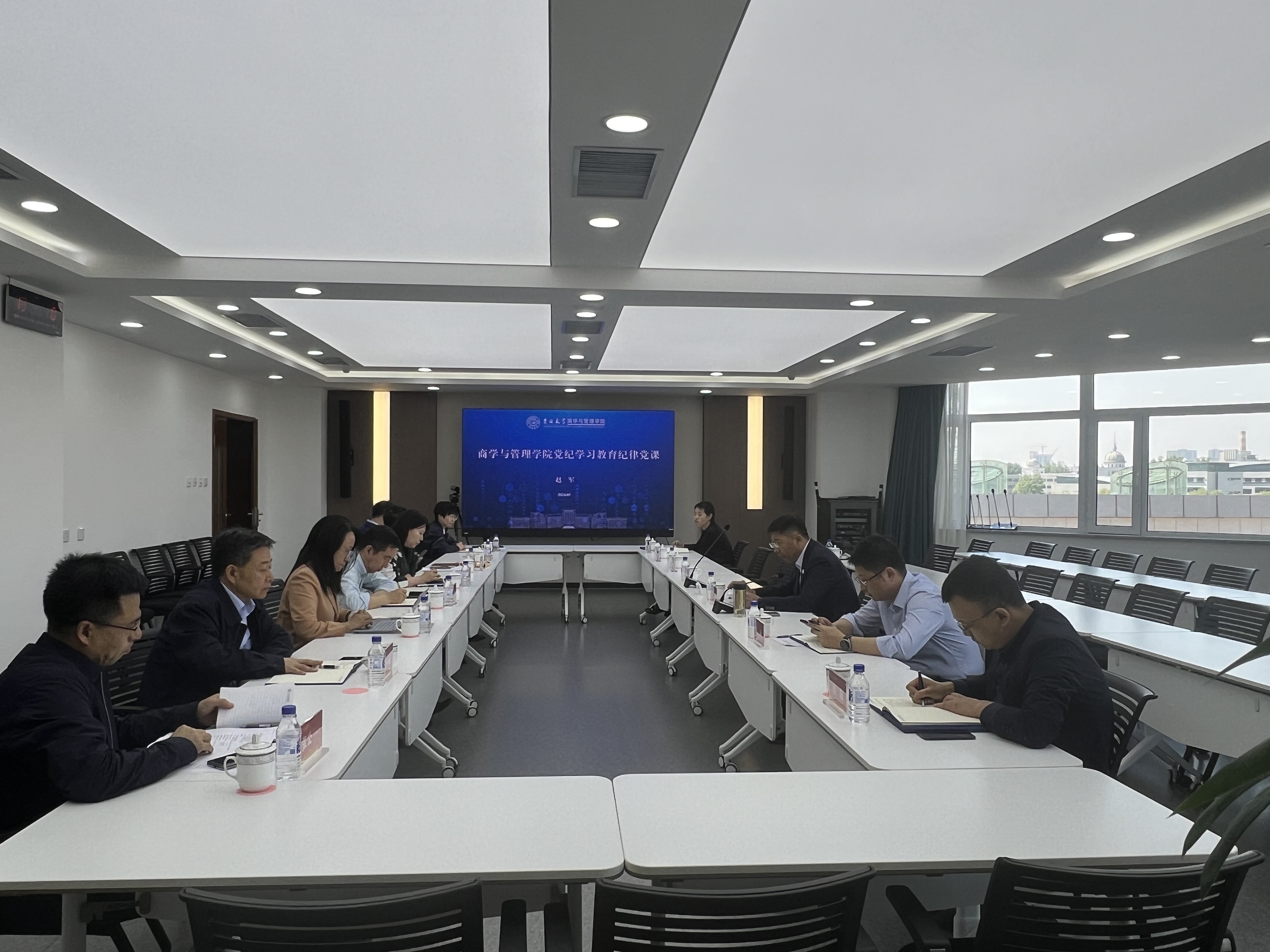 党委书记赵军在理论学习中心组集体学习会议上讲授题为《学纪·知纪·明纪·守纪》的纪律党课。学院领导班子成员、党委理论学习中心组全体成员参会。