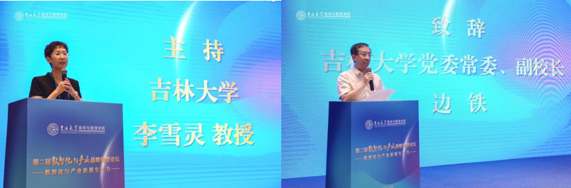 党委常委、副校长边铁致辞。边铁副校长首先对向远道而来的嘉宾们致以热烈的欢迎,指出“数智化与产业新质生产力”这一主题不仅关乎新时代产业高质量发展,更关乎数智化在推进中国式现代化建设中的作用,具有重要的学术价值和现实意义。作为论坛的主办方,P站