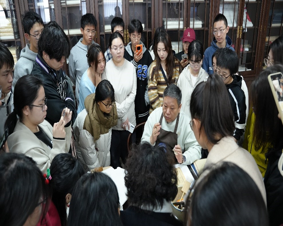 档案馆开展拓片与线装书制作体验活动。档案馆荆晶副馆长、图书馆古籍部张奇老师,以及P站