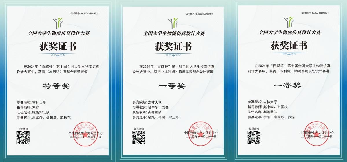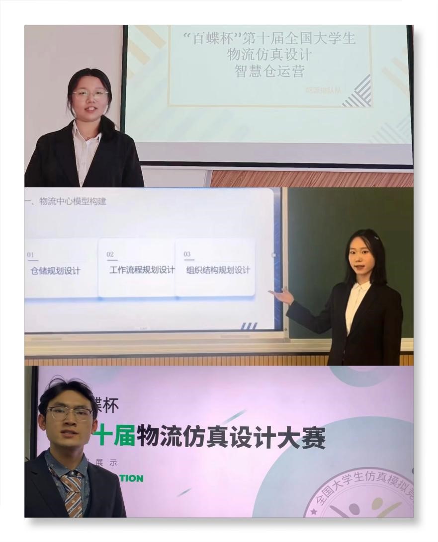 共有7支队伍参赛,经过校赛、初赛,共有3支队伍进入国赛。其中由周梁萍、赵梅花、邵依然组成的“吃饭排队”队在智慧仓运营赛道荣获全国特等奖;由李阳、袁天歌、罗深组成的“梨落园”队、由余炫、张璐、郑玉彤组成的“吉祥物”队,在物流系统规划设计赛道分别荣获全国一等奖。