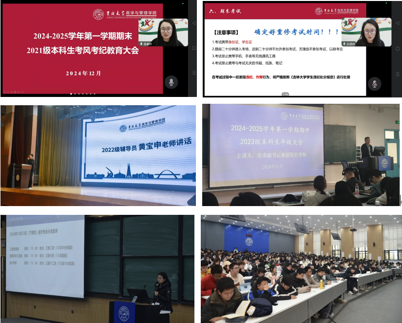 11月下旬到12月上旬,商管学院学工团队召开各年级年级大会和考风考纪教育大会,各年级辅导员针对《中华人民共和国教育法》第七十九条、第八十条;《刑法修正案(九)》第二十五条;《国家教育考试违规处理办法》第十二条;《普通高等学校学生管理规定》第五十二条等相关内容进行了细致解读。学院成立期末考试考风考纪教育管理工作小组,制定院级考风考纪教育管理工作方案,有效督促学生认真复习备考,切实增强学生自律意识和诚信意识。同时加强考试期间对各类重点关注学生的关心帮扶,持续深入学生宿舍、课堂,发现问题及时解决、化解、疏导,帮助学生做好心理调适,及时给予学生必要的心理指导和学业指导。学工团队还进一步强化学生党员的纪律意识,发挥党员在学风考风先锋模范作用,引导学生党员、学生干部带头作出诚信考试的承诺,并且密切关注网络舆情,对存在作弊倾向或苗头的学生及时给予干预和制止,引导学生诚信参考。