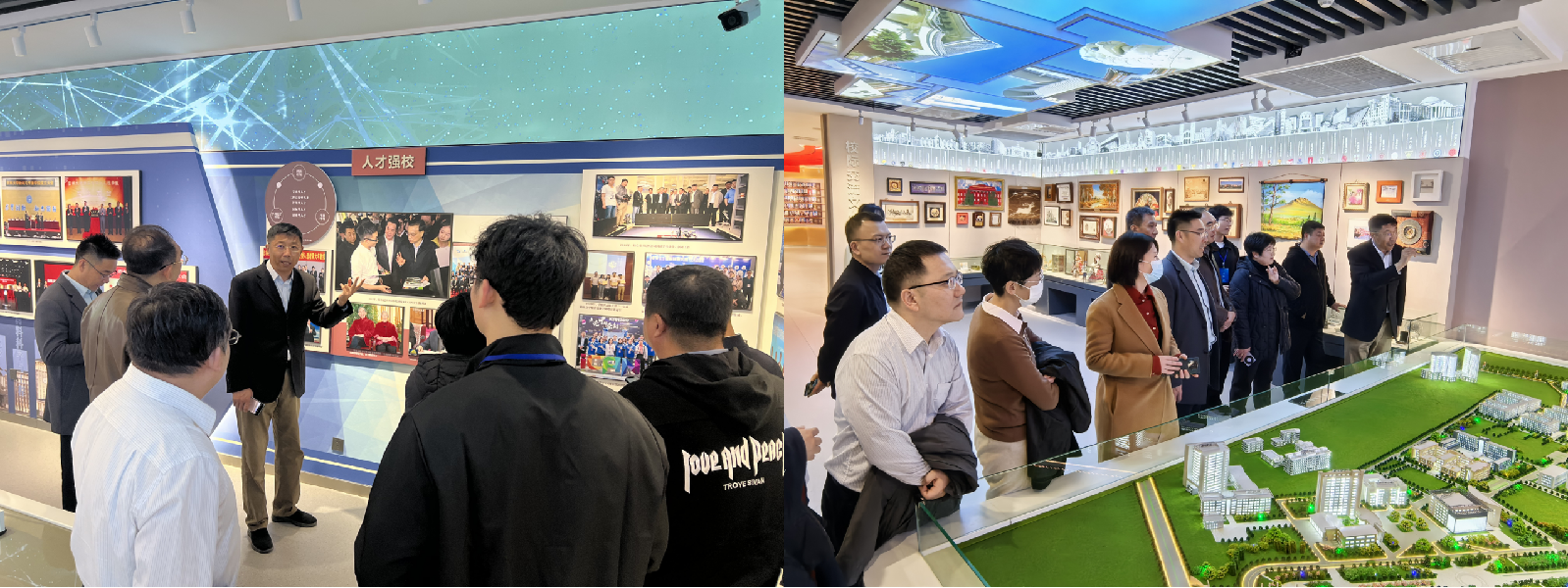 见学过程中,全体人员漫步于馆内。一处处精心复原的历史场景、一张张镌刻史痕的照片画册、一件件承载时光的精美展品,将一辈辈吉大人栉风沐雨、筚路蓝缕地奋斗历程展现地淋漓尽致。参观人员或驻足凝望,视线与时光碰撞出的是吉大人孜孜不倦地拼搏历史;或抚掌感慨,话语与回忆交融成的是吉大人代代相传的奋斗热情。