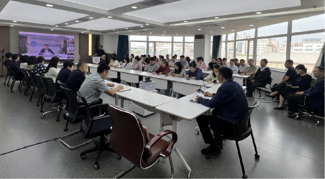 于6月4日下午1点以线上线下相结合的方式召开全院教职工大会,学院全体教职工参会,会议由党委书记赵军主持。