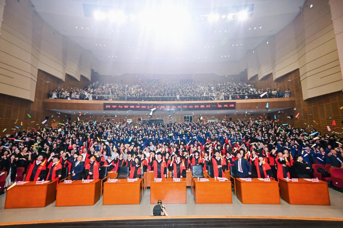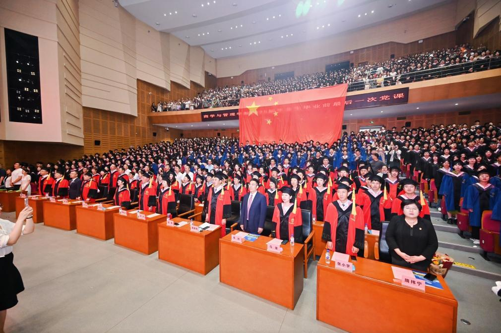 党委书记赵军以“把青春播撒在民族复兴的征程路上”为题,为即将扬帆起航的全体本硕博毕业生作了“毕业前最后一次党课”。学院领导、三委会主任、教师代表、毕业生及家长代表逾1300人共同见证了这一庄严而温馨的时刻。