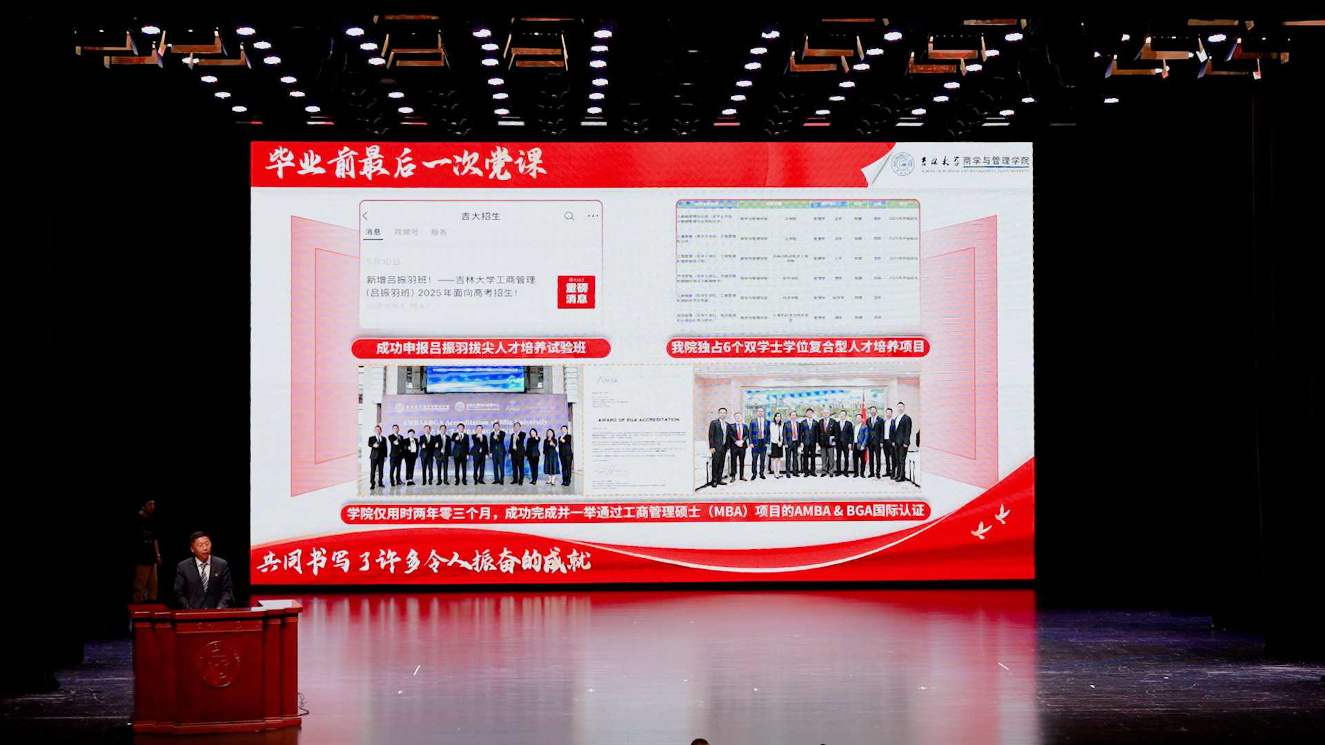 党课上,赵军叮嘱毕业生们:学院永远是他们的温暖家园和精神港湾,永远珍藏着他们最闪耀的青春记忆,学院也期盼着分享他们成长的每一步荣光。此刻,吉大人的那句共同心声:“一日归属吉大,一生念念不忘!”也愈发炽热滚烫。