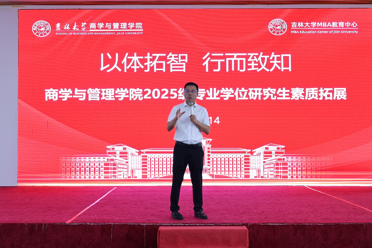 MBA教育中心主任张公一出席开场仪式并讲话。他代表学院热烈欢迎25级新同学的到来,他强调,素质拓展是学院专业学位研究生培养体系中的重要一环,是课堂理论教学的延伸与实践,同时鼓励同学们在拼搏的汗水中凝聚力量、锤炼意志,在集体的智慧中团结协作、携手共进,在积极的实践中突破自我、超越自我。