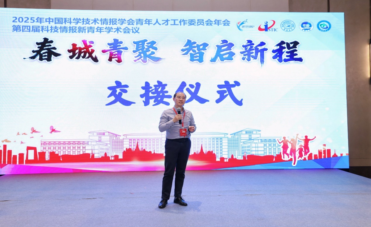 最后,会议举行交接仪式。中国科学技术情报学会青年人才工作委员会主任刘志辉研究员将2026年会议主办权移交武汉大学信息管理学院,武汉大学举办方代表程齐凯副教授向全场嘉宾发出热情邀约,表示武汉大学将精心策划,力争将明年的盛会打造成开放、前沿、高效的学术交流盛会,欢迎大家明年相约武汉,共襄学术盛举。