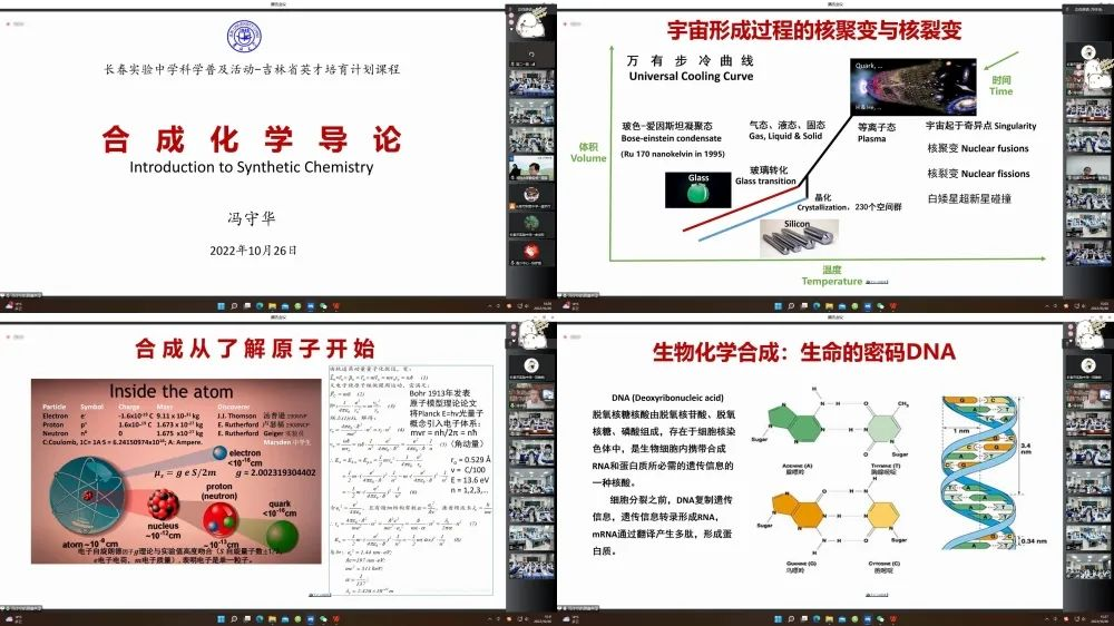 为进一步提升“英才计划”学生选拔和培养质量,落实中共中央办公厅、国务院《关于新时代进一步加强科学技术普及工作的意见》的文件精神,10月26日“院士科普进校园——暨长春市实验中学英才计划前置培养活动”在云端举行。本次活动邀请到了中国科学院院士、P站