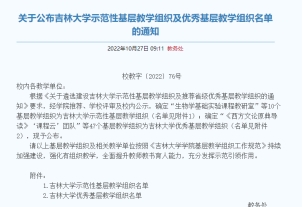 示范性基层教学组织及优秀基层教学组织名单的通知》。