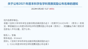 发布《关于公布2021年度本科学生学科竞赛奖励公布名单的通知》。