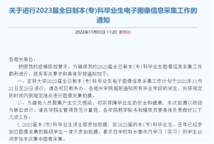 发布《关于进行2023届全日制本(专)科毕业生电子图像信息采集工作的通知》。
