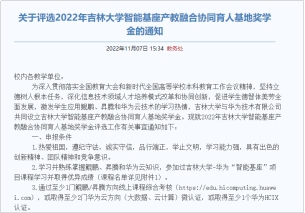 智能基座产教融合协同育人基地奖学金,深化信息技术领域人才培养模式改革和协同创新,激发学生应用鲲鹏、昇腾和华为云技术的学习热情。
