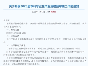 发布《关于开展2023届本科毕业生毕业资格预审核工作的通知》。