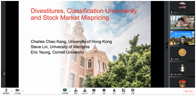 Kang博士讲座题目是:Diverstiture, Classification Uncertainty, and Stock Market Mispricing。Kang博士关注了美国关于公司资产剥离信息披露政策,并创新性的研究了这一政策导致的公司资产剥离分类不确定性上升如何影响公司股票的定价效率。