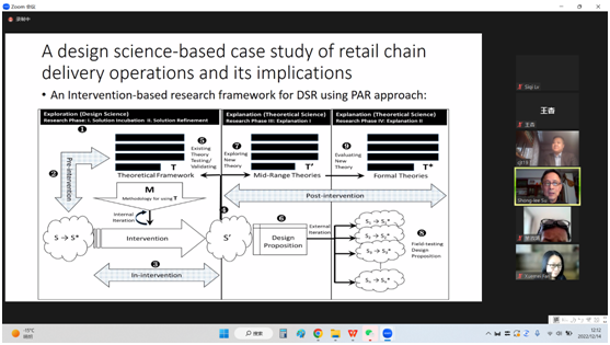 苏教授还以自己2021年发表在SSCI期刊上的一篇设计科学研究论文A design science-based case study of retail chain delivery operations and its implications 为例,详细介绍了该研究的起源、开展实践行动的过程、写作、投稿及修改的全过程。整场报告持续了2个小时,在总结环节,樊雪梅副院长感谢苏教授为我们主讲了案例研究系列四次系统、深入、务实的讲座,并表示未来希望和苏教授有更多的合作。