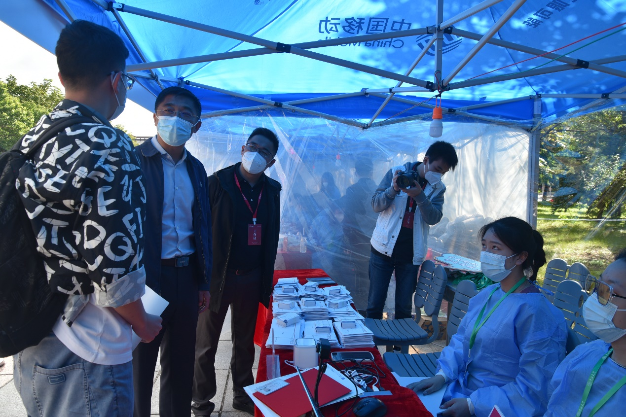 上午9点左右,学院党委书记赵军、党委副书记马腾、副院长郭英彤、党办主任史秀玫、院办主任赵晓波来到迎新现场,了解新生报到情况,对学工办全体老师和志愿者们表示亲切慰问和感谢。同时,与正在迎新现场报到的2022级新生亲切交流,对他们考入P站