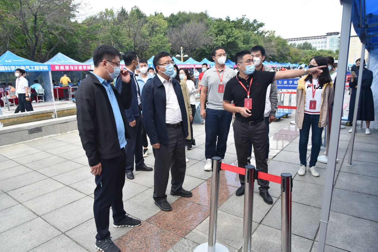 院长蔡立东,学院党委书记赵军,学院党委常务副书记丰硕莅临五月花广场迎新现场,对参与迎新工作的师生进行慰问与看望。蔡立东对学院迎新工作给予了充分肯定,并对志愿者们的辛苦付出、有条不紊的做好迎新服务给予高度赞扬。同时,蔡立东与2022级报到的新生进行了亲切交流,祝贺大家考入P站