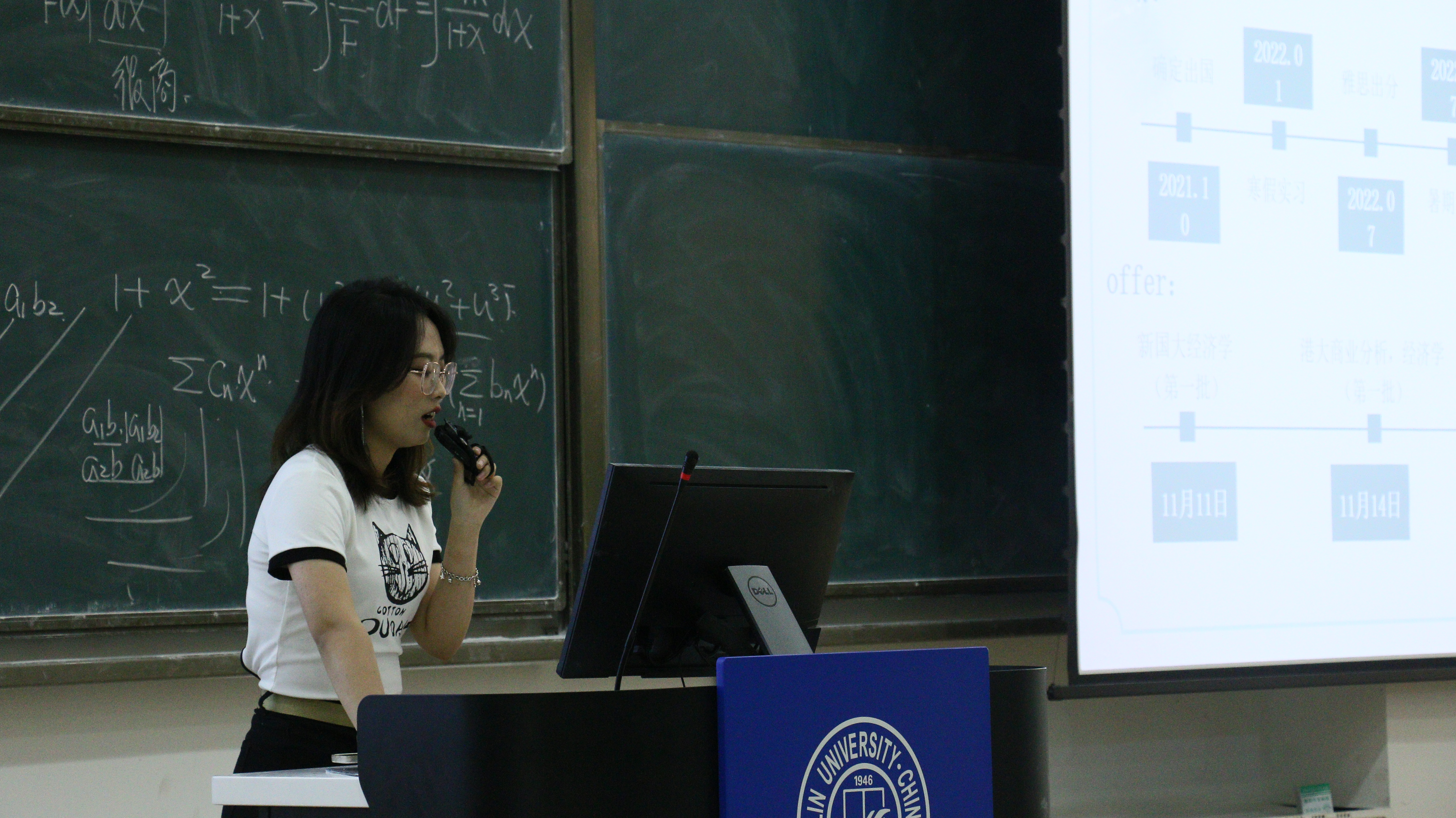 紧接着王璧学姐带来了自己的港新留学经验交流。学姐以自身为例,一一列举自己遇到的问题,为大家提出了许多优化建议,对留学需要的资历要求做出充分说明,提出了诸如雅思备考等学习方法,还为大家推荐了许多必备学习软件,在场的同学们无不认真聆听。