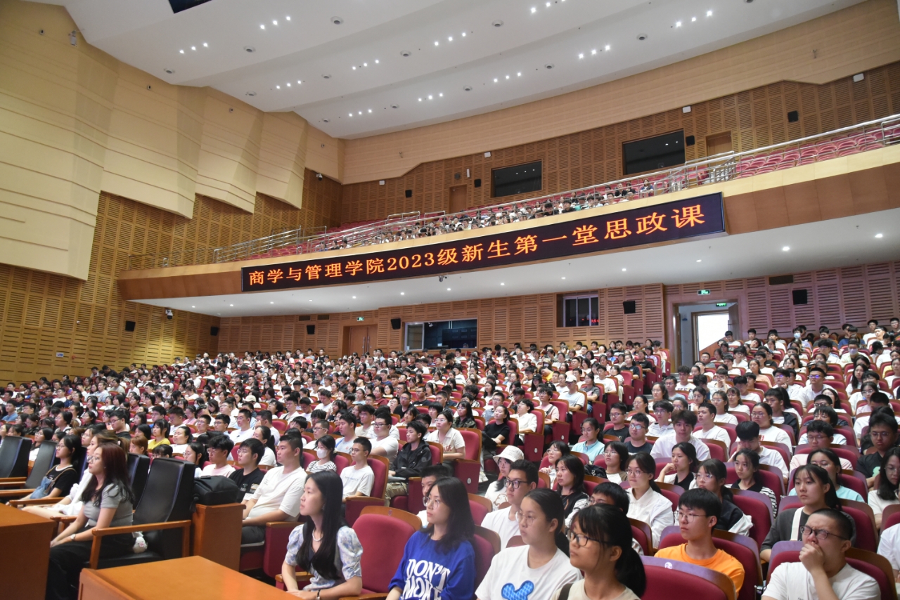 商学与管理学院于鼎新大讲堂开展了新生第一堂思政课,此次思政课由P站