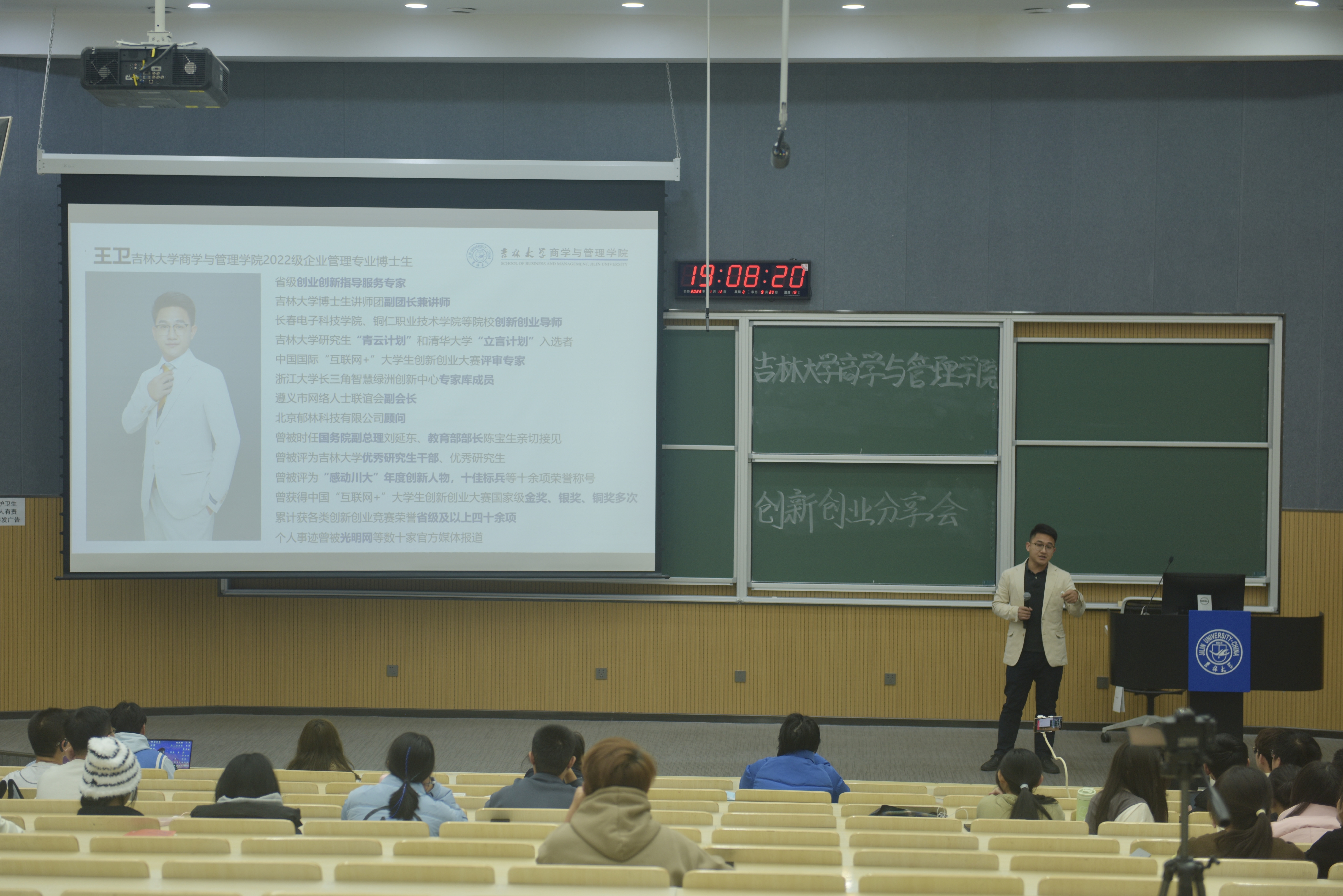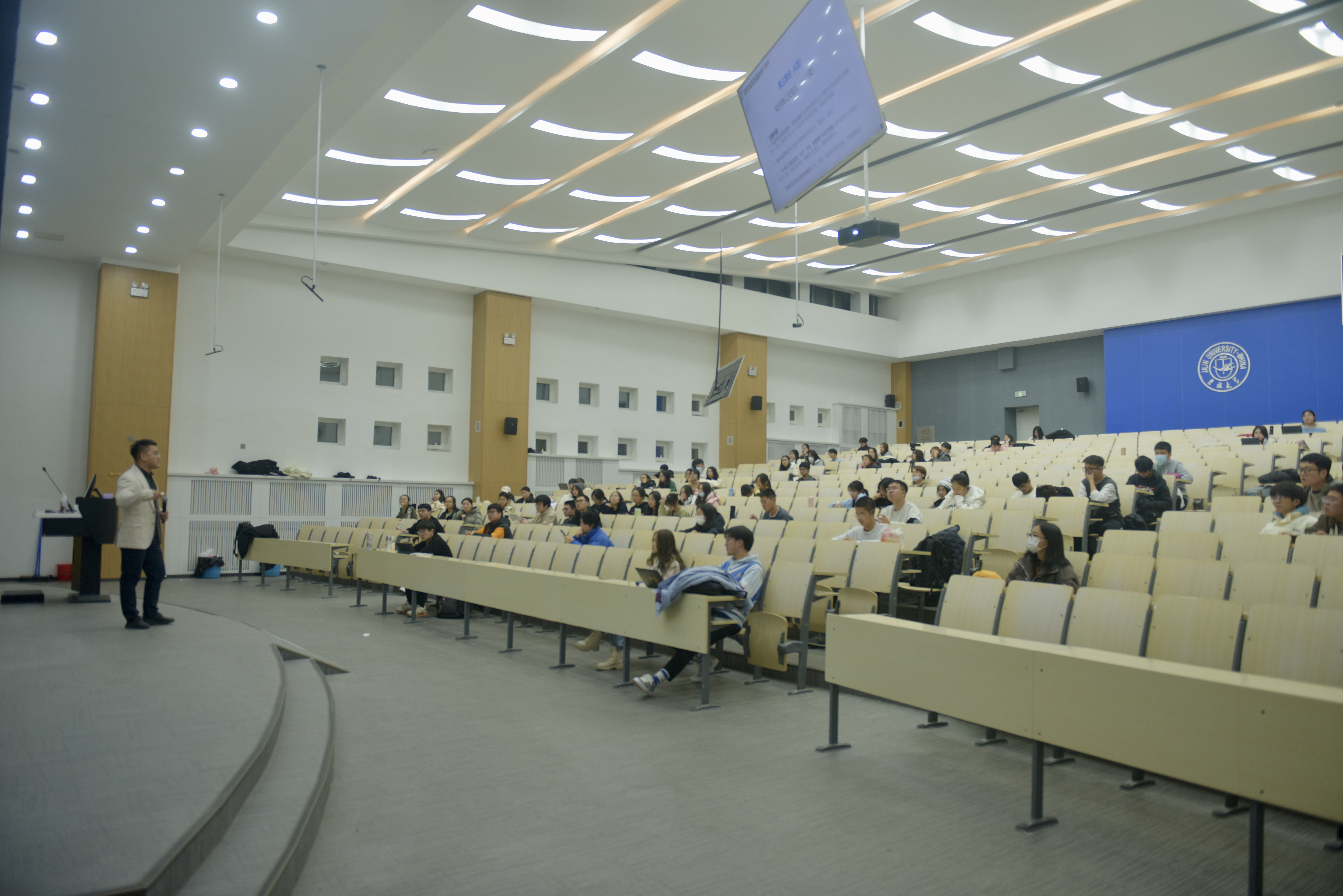 商管学院博士研究生、“互联网+”大学生创新创业大赛评审专家——王卫,作为主讲人为同学们做出分享。王卫师兄首先介绍了如何选择比赛项目,将初创组、成长组和创意组三个赛道各自的特点进行阐述,随后列出热门的项目大类,诸如乡村振兴、人工智能+医疗等,提出了宝贵的建议。其次,王卫师兄重点介绍了如何做出高质量的BP(商业企划书)PPT,从封面的制作到正文的内容涵盖,再到封底的制作,详细的讲述让在座的同学们都受益匪浅。