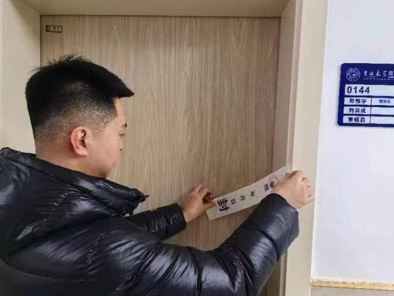 此次2023年秋季学期末寒假安全检查工作中,参与人员按照学校学院的各项要求,对学院学生公寓楼设施设备运行与维护、公寓整体环境与安全、学生宿舍卫生安全等方面全方位“地毯式”搜索,不留遗漏,严格筛查;为确保留校学生假期安全、维护宿舍设施、保障校园秩序等,认真仔细地将假期无留校学生的寝室用封条一一封寝;为保证学院留校学生安全愉快地度过寒假,与学生们亲切地探讨学习和生活,关怀备至,如春风化雨,温暖人心。